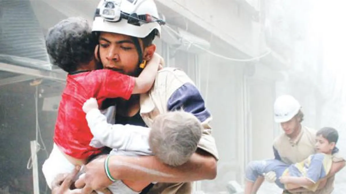 الفيلم شديد الإنسانية يفتتح بدايته مشهد لعضو في الدفاع المدني وهو يداعب طفلته التي تلبسه الخوذة البيضاء فيخرج من المنزل لا يعرف ما ينتظره. لتتوالى بعدها المشاهد المروعة التي يتعرض لها المسعفون تحت القصف، منها مشهد لإنقاذ رضيع من تحت أنقاض منزل وسط صيحات التكبير. أما رسالة المسعفين فيرويها باقتضاب متطوع أكبر سناً مقتبساً من القرآن، قائلاً هدف المجموعة "ومن أحياها فكأنما أحيا الناس جميعاً".