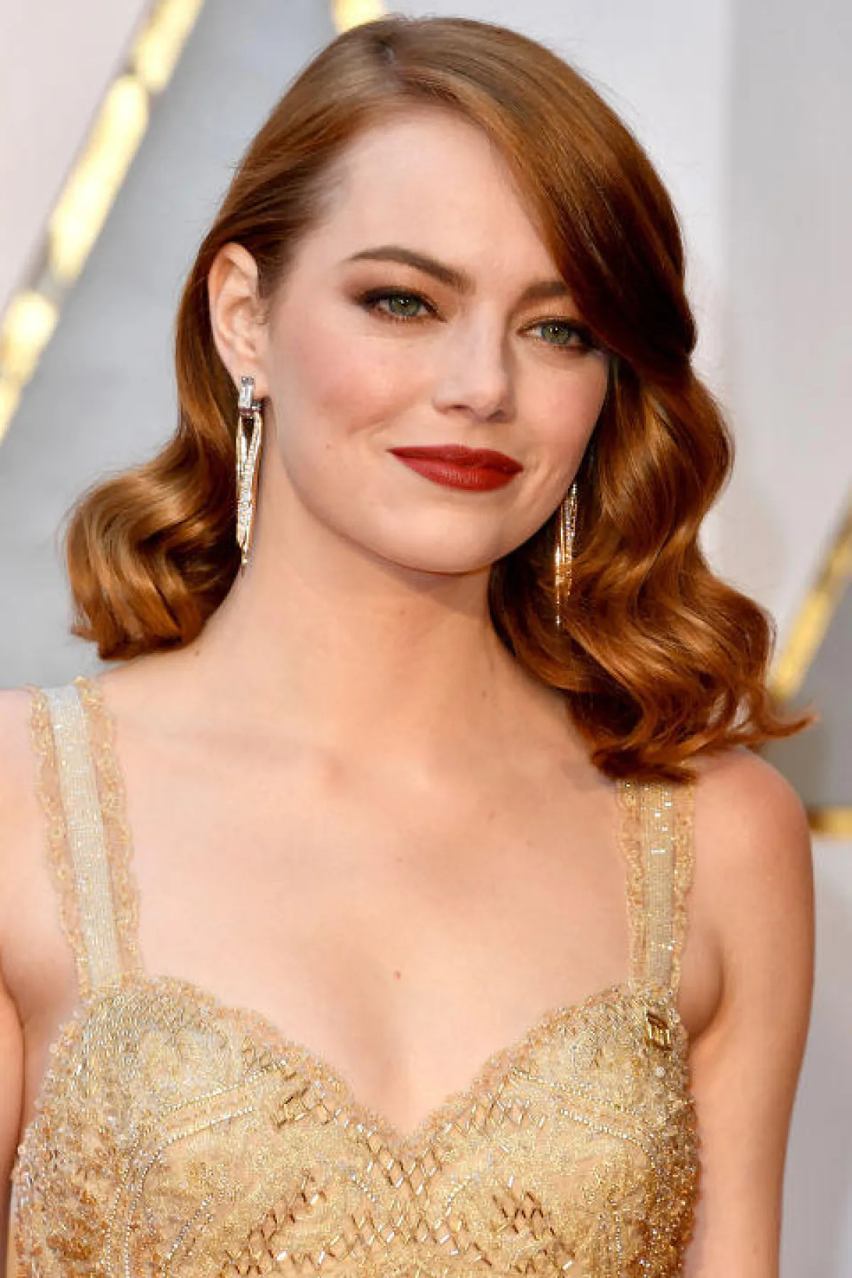 كذلك فقد اختارت النجمة الفائزة بجائزة الأوسكار عن فئة أفضل ممثلة "ايما ستون" Emma Stone أقراطاً من "تيفاني أند كو" Tiffany&Co من مجموعة "بلو بوك" Blue book من الذهبي عيار 18 قيراط.