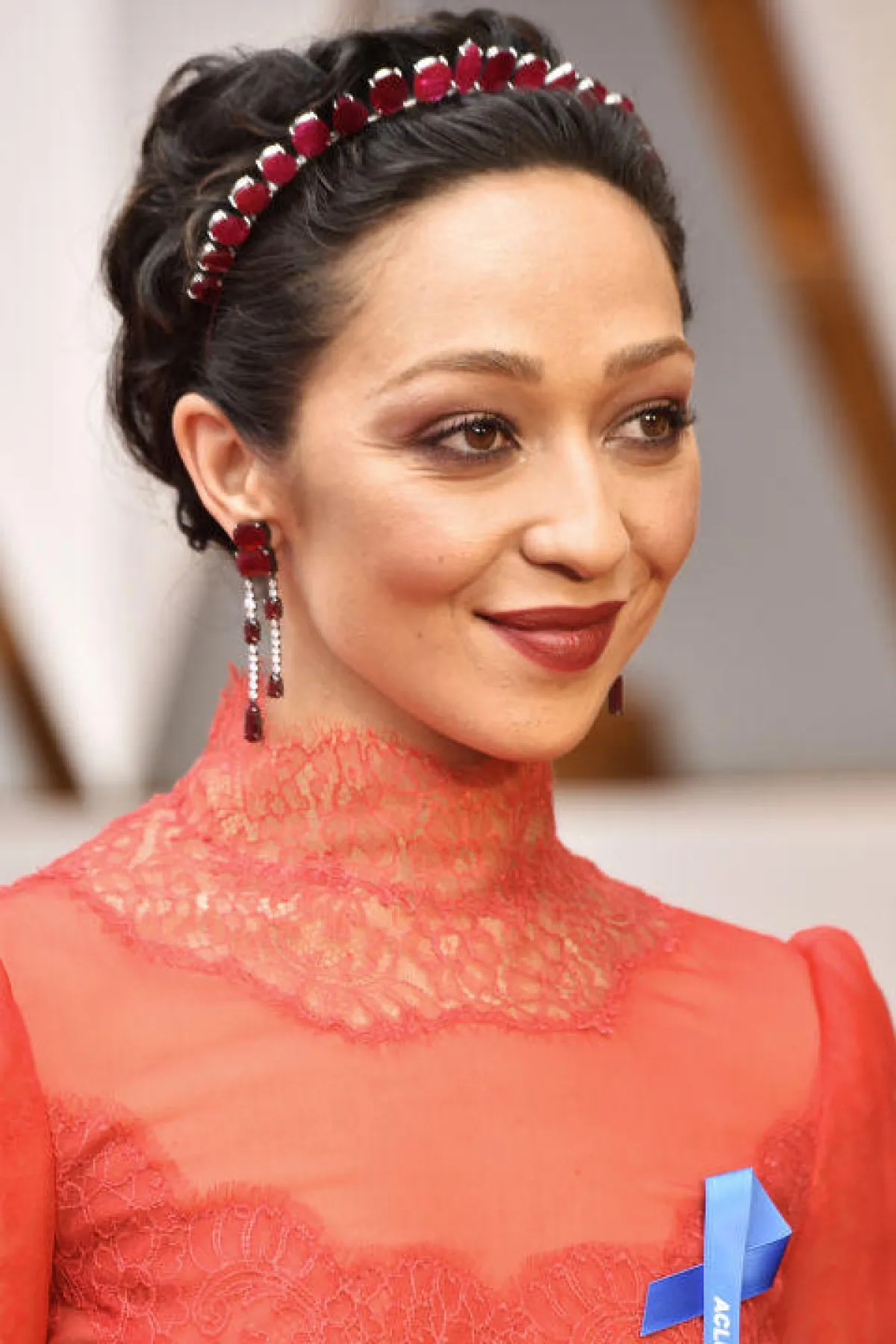 فعلى سبيل المثال اختارت النجمة "تشارليز ثيرون" Charlize Theron مع فستانها الذهبي من "ديور" Dior أقراطاً لافتة من الألماس من دار "شوبارد" Chopard من مجموعة "غاردن أوف كالاهاري" Garden of Kalahari.
