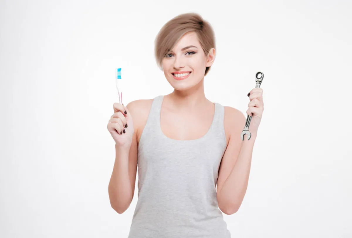 2. تُفرك الأداة بفرشاة أسنان قديمة.