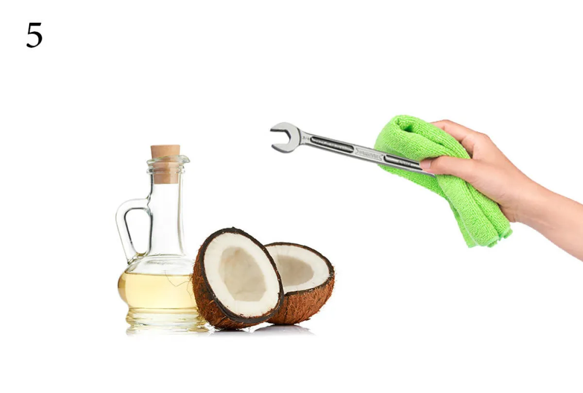 5. تُمسح الأداة بالقليل من زيت جوز الهند، وتُجفّف قبل تخزينها لحمايتها من التعرض إلى الصدأ.