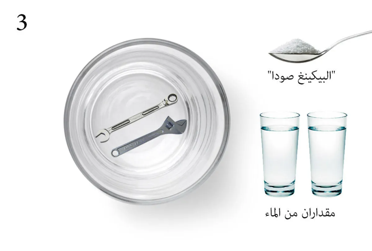 تتعرّض القطع المصنوعة من الحديد، لا سيما أدوات التصليح، إلى الصدأ مع مرور الوقت. وللتخلّص من الصدأ ، يمكن اتباع الخطوات الآتية: