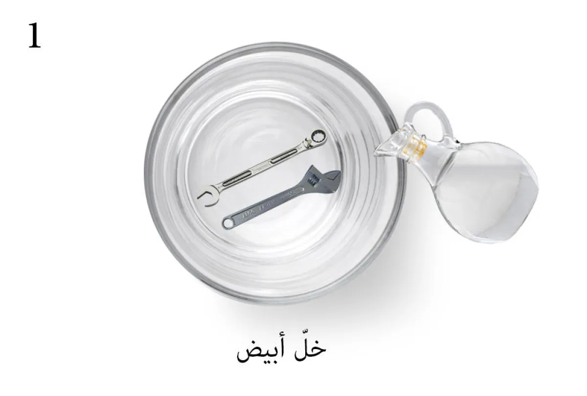 1. تُنقع أداة التصليح، في وعاء يحوي مقدارًا من الخلّ.