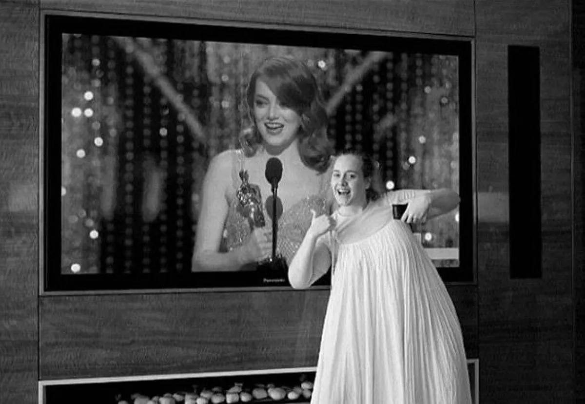 ونشرت أديل صورةً جديدةً لها، على حسابها الشخصي بموقع التواصل الاجتماعي إنستقرام، تُظهر فيها فرحتَها أثناء حصول إيما على الجائزة، وإلقائها خطابها، وهي تقف أمام التليفزيون.