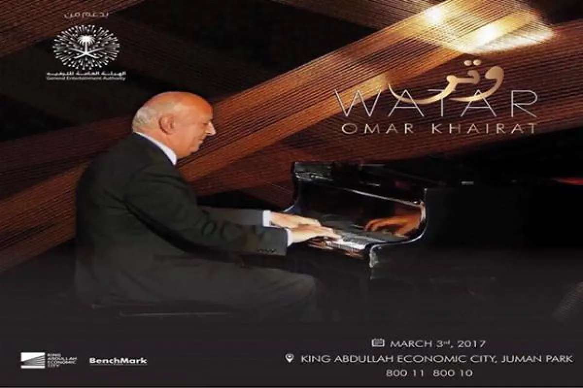 يذكر أن حفل الموسيقار عمر خيرت، يقام داخل حديقة جمان بمدينة الملك عبدالله الاقتصادية يوم الجمعة 3 مارس المقبل، وذلك ضمن حزمة الأنشطة التي توفرها هيئة الترفيه بالمملكة.