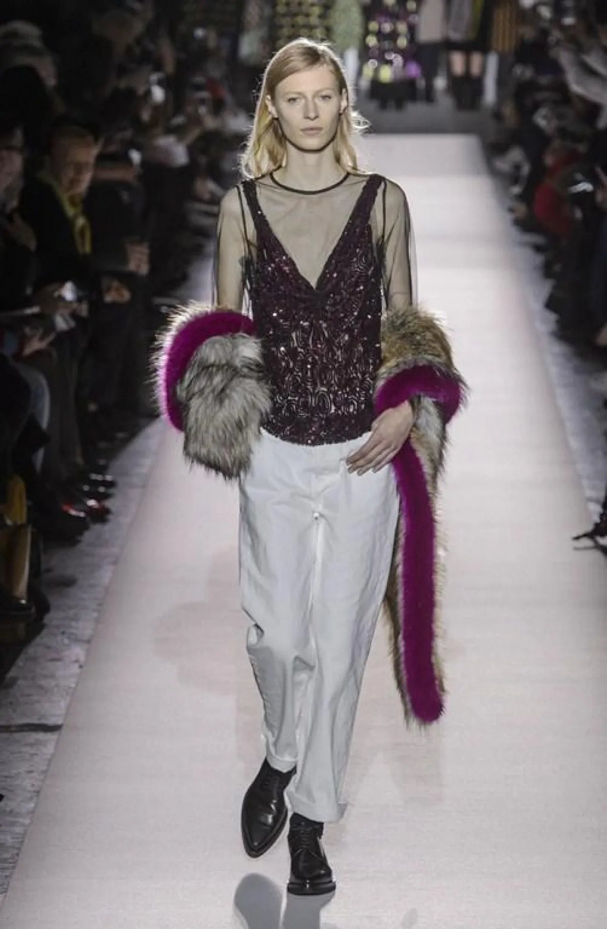 من جهته، أمتع المصمم البلجيكي "دري فان نوتن" Dries Van Noten الحضور بعرض رائع اختصر من خلاله إنجازاته ونجاحاته في عالم الموضة حيث احتفى يوم أمس بعرضه المائة، وبهذه المناسبة دعي أشهر العارضات اللواتي بصمن حقبة التسعينات للمشاركة في عرضة من بينهن العارضة الشهيرة كارولين مورفيCarolyn Murphy ، جاء عرضه لهذه السنة اختصارا لكل ما قدمه خلال السنوات الماضية تنوع ما بين الفساتين الفضفاضة المصنوعة من الأقمشة المطبعة بالأزهار ومختلف الأشكال الهندسية والمعاطف الشتوية العريضة.