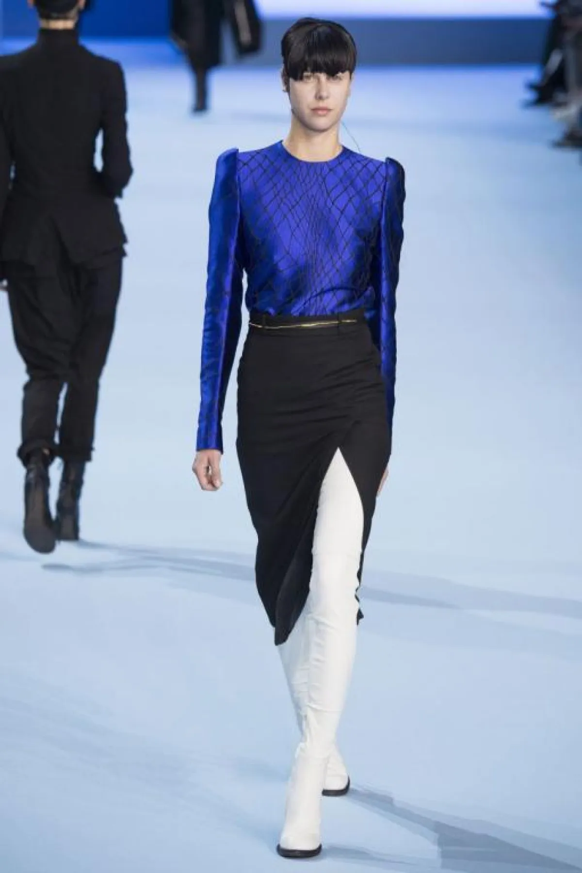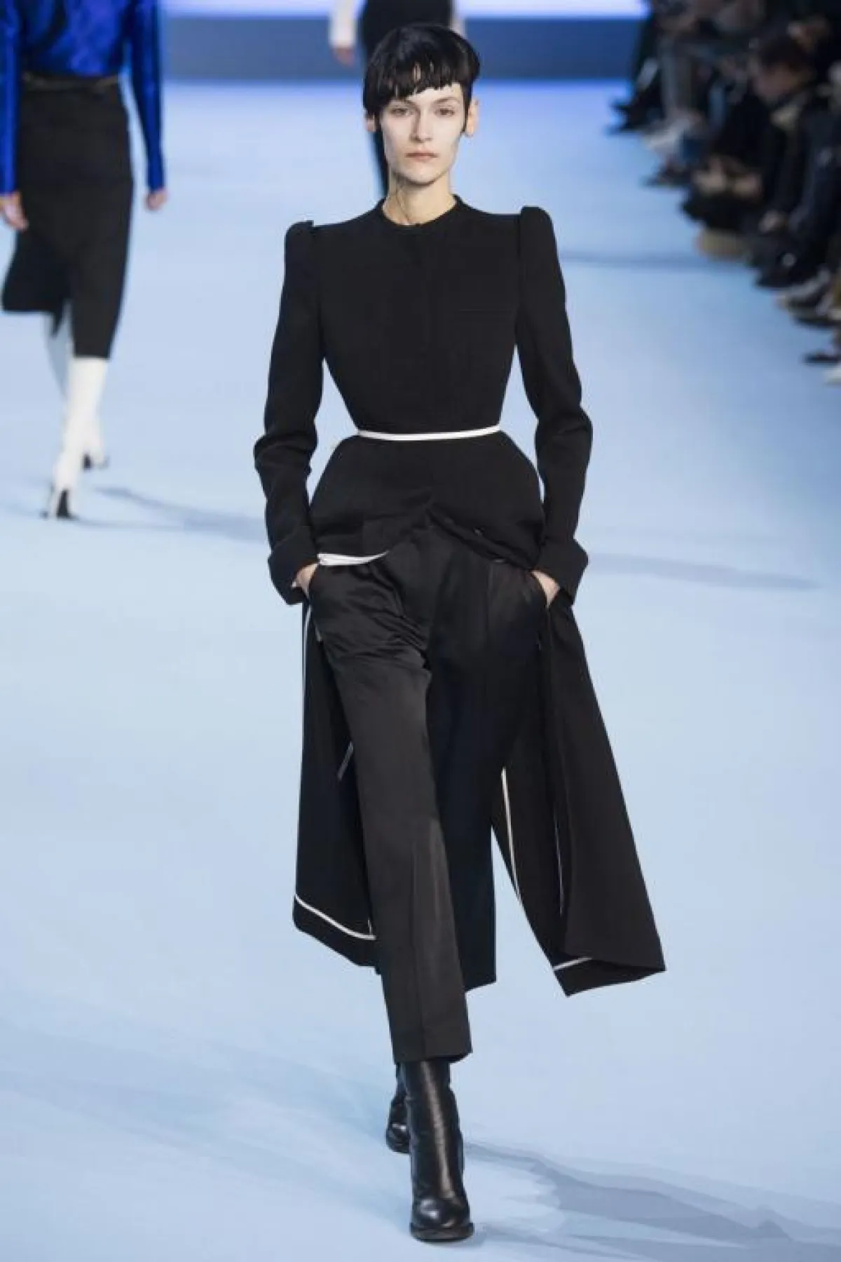 وفي هذا اليوم أيضاً تابعنا عرض أزياء دار "حيدر أكرمان" Haider Ackermann الذي قدم مجموعة راقية استوحاها بكشل أساسي من اللون الأسود الذي امتزج في بعض التصاميم بطريقة لافتة مع الأبيض، والأزرق الحيوي، وقد ضمت المجموعة البدلات الرسمية، الفساتين المتوسطة الطلول، والمعاطف، وقد لاحظنا حرفة عالية في الخياطة وابداع لافت في التصاميم.