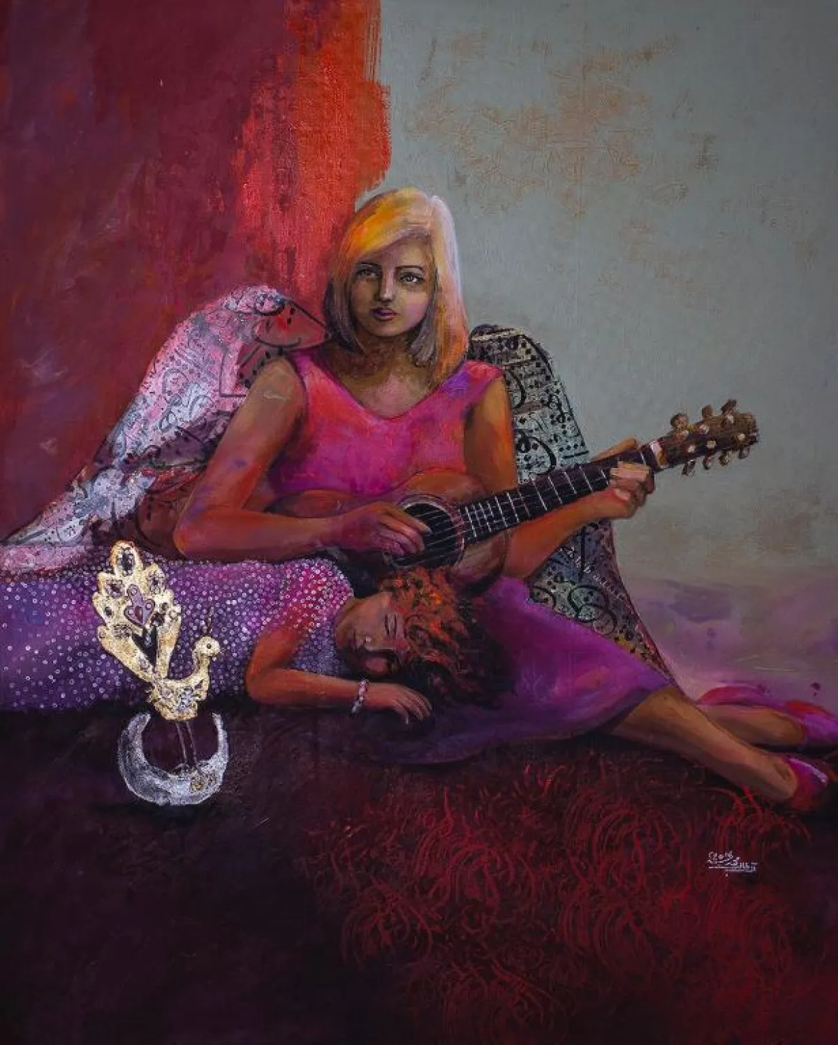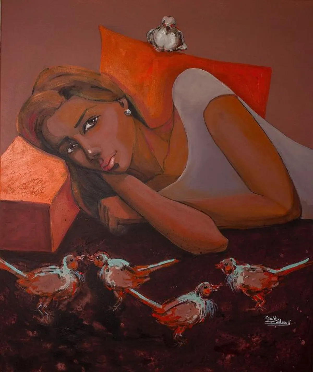 ويحتوي المعرض على أكثر من ستين عملاً ما بين جدارية واللوحات كبيرة الحجم والمتوسطة والصغيرة بخامة «الإكريليك»، وأعمال هذا المعرض تنقسم إلى تجربتين: التجربة الأولى امتداد إلى أسلوب سابق للفنانة، والتجربة الثانية اعتمدت فيها الاختزال والاختصار في الشكل واللون بطابع تعبيري وحس روحي ولوني متجدد.