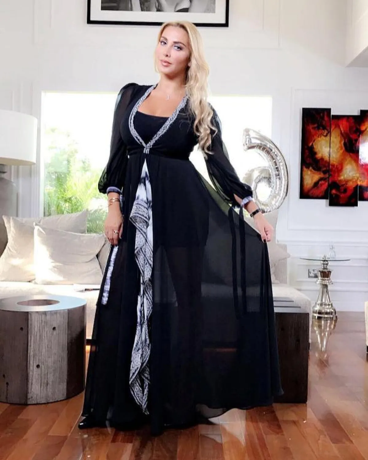 ومن خلال مراقبتنا لإطلالات جويل مردينيان، لاحظنا أنها اختارت القفطان المغربيّ والعباية، للكثير من إطلالاتها في الآونة الأخيرة. فارتدت جويل عبايةً باللون الأبيض بأكمام من الشبك، ونسقت معها نظارات شمسيّة، كما رأيناها ترتدي عباية باللون الرمادي الفاتح، مزيّنة بتطريزات ناعمة، نسقت معها حذاءً رياضيّاً وحقيبة يد باللون الزهري الغامق. وتألقت جويل بعباية باللون الأبيض في قسمها العلوي، والأسود في قسمها السفليّ، يفصل بينهما رسومات وورود كبيرة. ولم تقتصر خيارات جويل للأزياء الخليجية على العبايات فحسب، وإنّما تألقت في أكثر من مرة بالقفطان المغربي، الذي منحها إطلالةً فاخرة ومميّزة. فارتدت جويل قفطاناً باللونين الأخضر الفاتح والأبيض المطرز، نسقت معه "كاب" باللون الأزرق الغامق من المخمل. وتميزت أيضاً باختيارها لقفطان باللون الأزرق الفاتح، مطرز بتطريز ذهبيّ نسقت معه حقيبةَ يد باللون الأخضر. وغيرها من الإطلالات المميزة التي اختارتها جويل بالعباية والقفطان المغربي.