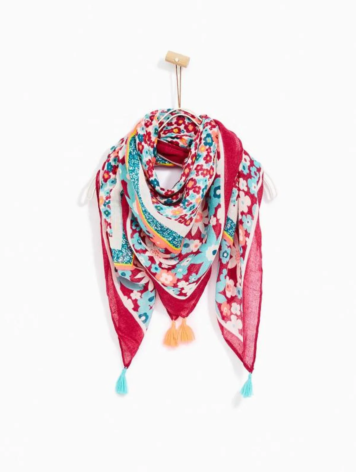 شال رقيق مزين بورد أحمر