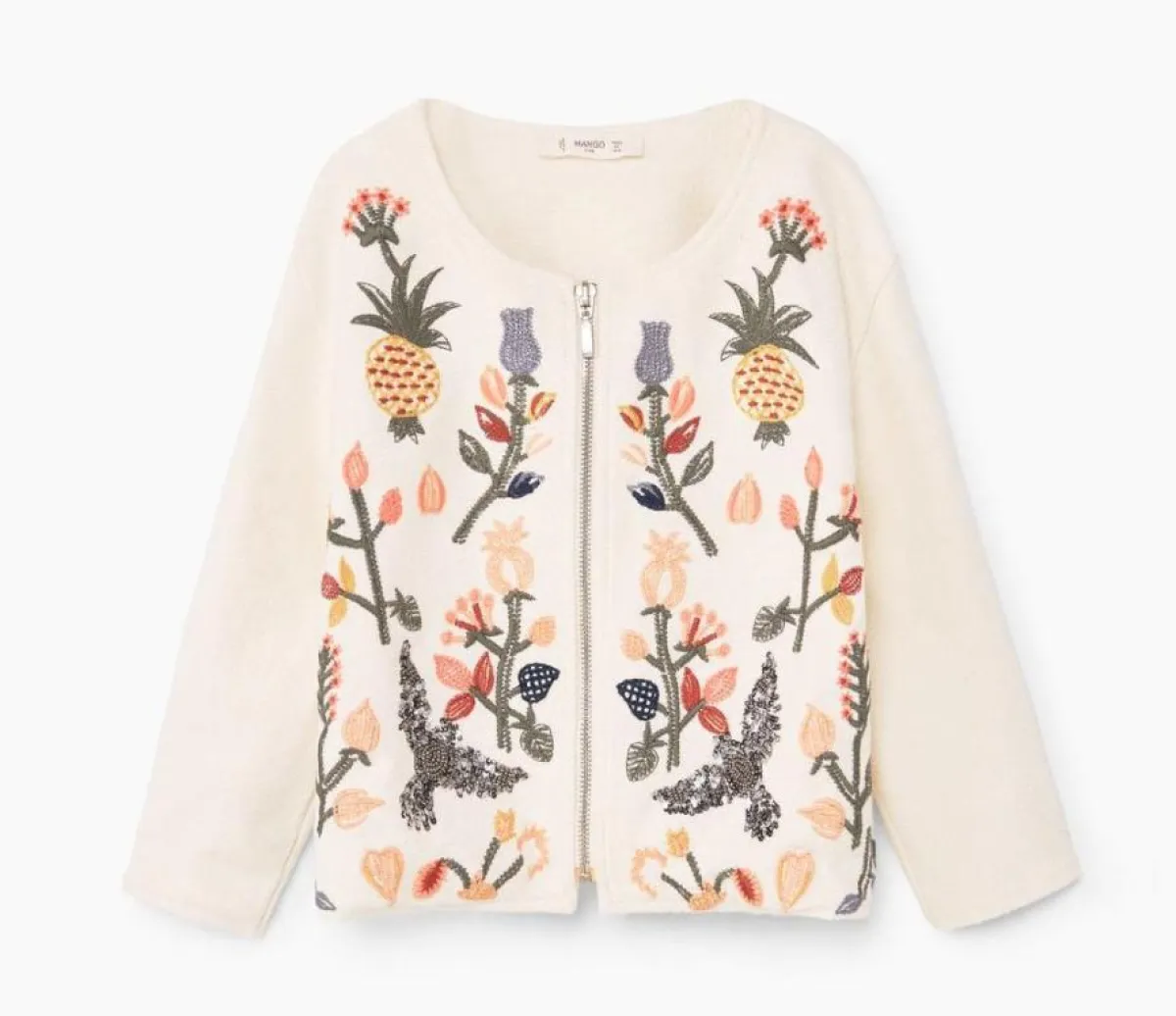 جاكيت مطرز بالورد وحبات الفاكهة الملونة