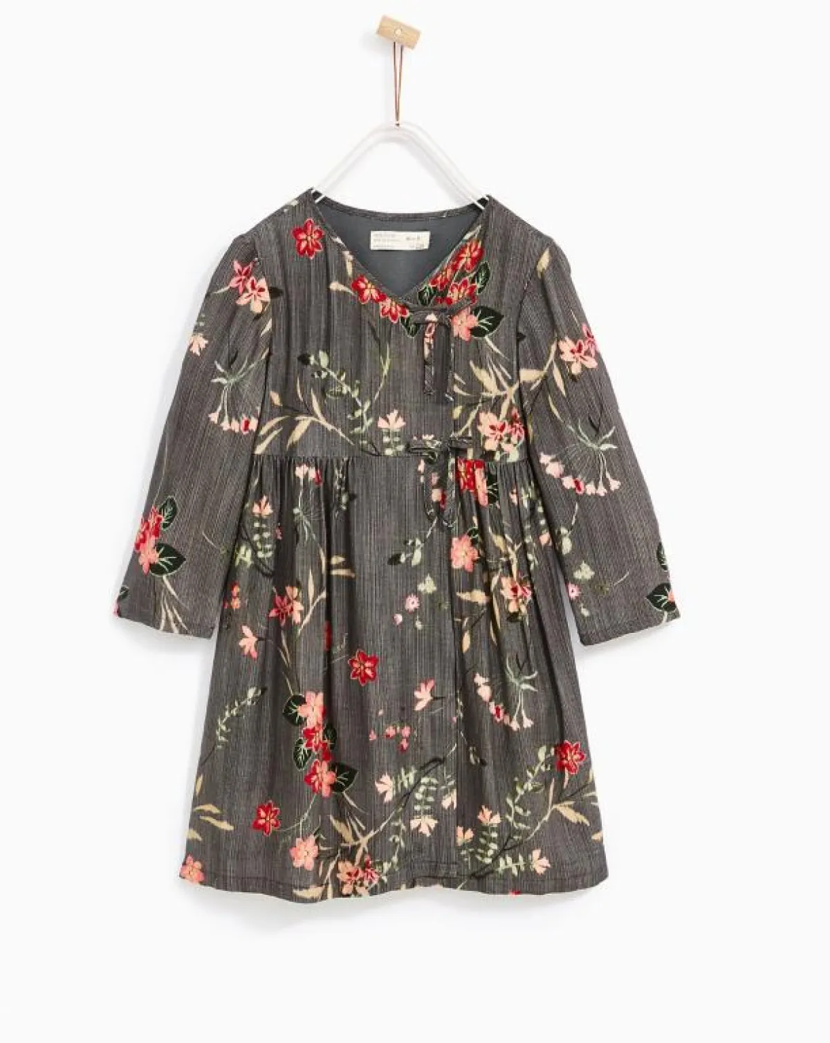 فستان ميدي رمادي مزين بالورد