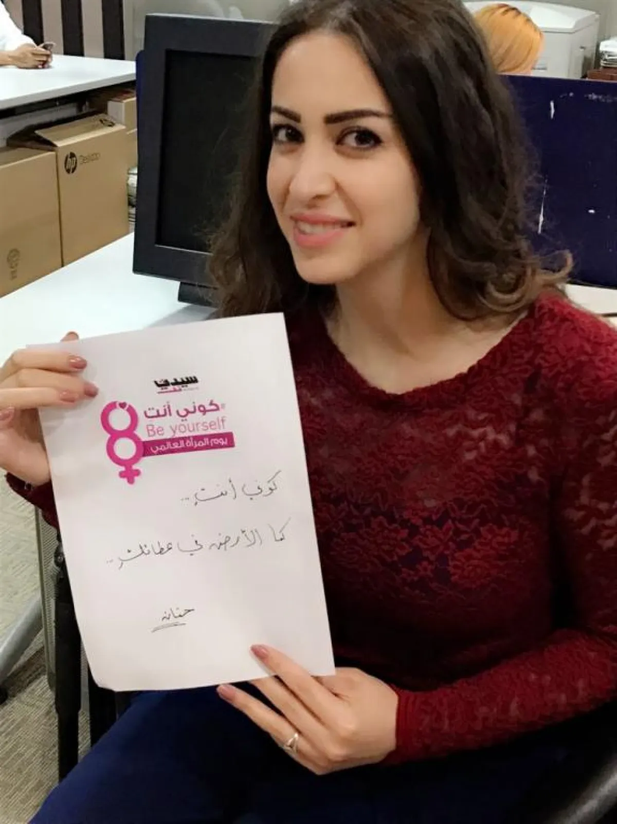 الزميلة زينة حاموش: كوني الامل المنبعث في فضاء الكون وحاضنة الرسالة الانسانية الخالدة
