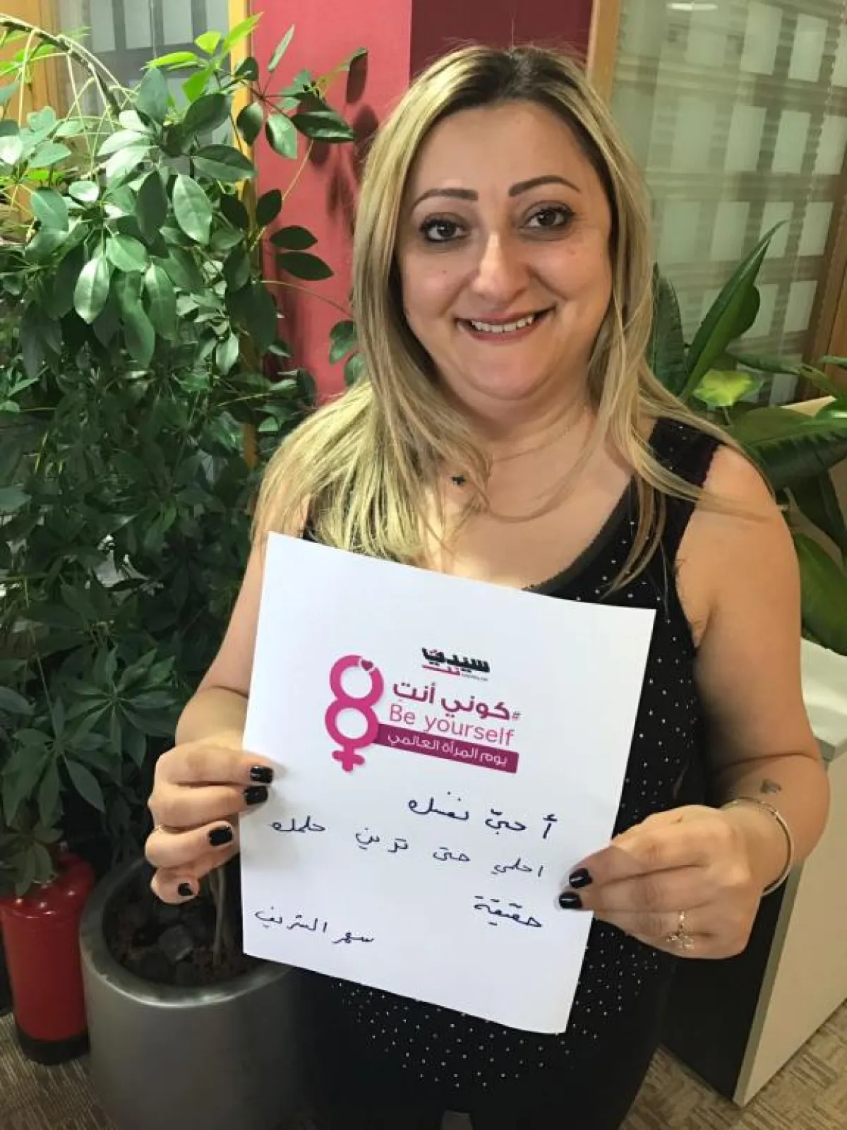 " كوني _ انتِ " هاشتاغ تطلقه "سيدتي"،  بمناسبة يوم المرأة العالمي؛ ليكون شعاراً معبّراً عن تطلعاتنا لواقع المرأة العربية كما نطمح إليه .المرأة الأم والعاملة والزوجة وسيدة الأدوار المتعددة في مختلف المجالات ،هي التي ندعوها اليوم لكي تكون صاحبة هوية وشخصية مستقلة لا تتأثر بآراء الغير، ولا تتلوّن بتيارات غريبة عن مجتمعها وبيئتها ومحيطها . هي المرأة التي عندما تنظر إلى مرآتها لا ترى آثار الآخرين، بصماتهم، إسقاطاتهم وذبذباتهم، بل تشاهد وجهها الحقيقي الخالي من المساحيق الذي يعكس روحها ومشاعرها وداخلها بكل صفاء . هي المرأة التي لا تستمع إلى ثرثرة أو نميمة أو أصوات النشاز من حولها، بل تصغي إلى ما يغذي فكرها وروحها ويحيي نبضات قلبها من ابتسامات أولادها وبوح زوجها ونصح الحريصين على مصلحتها .