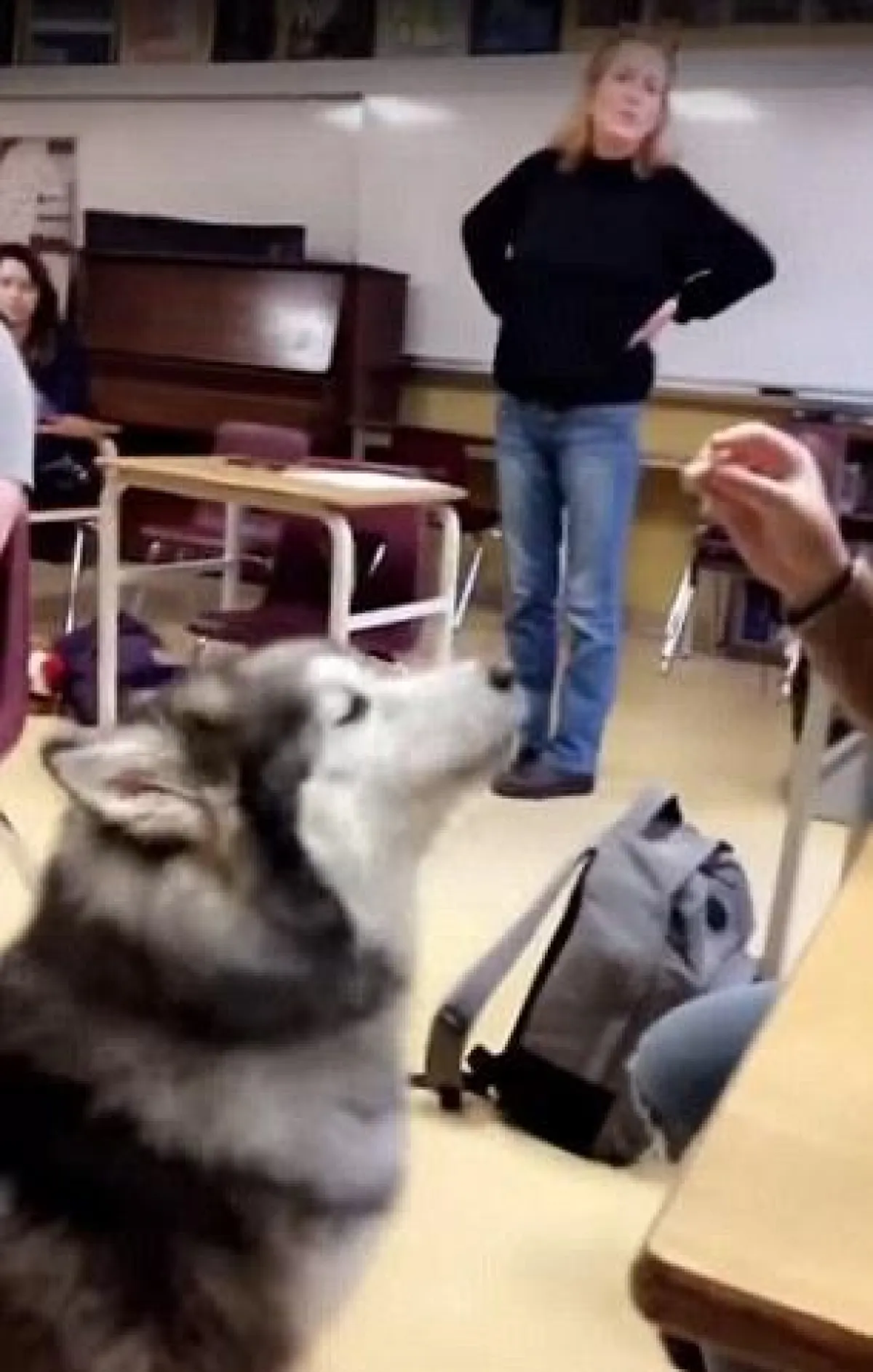 وطبقاً لصحيفة "ديلي ميل" البريطانية التي نشرت الفيديو، تظهر الفتاة داخل فصلها الدراسي بكندا تلهو مع كلبها حيث قالت له مرتين "أنا احبك"، ليردد بعدها "أنا أحبك"، فتضحك بصوت مرتفع على رد فعل كلبها.