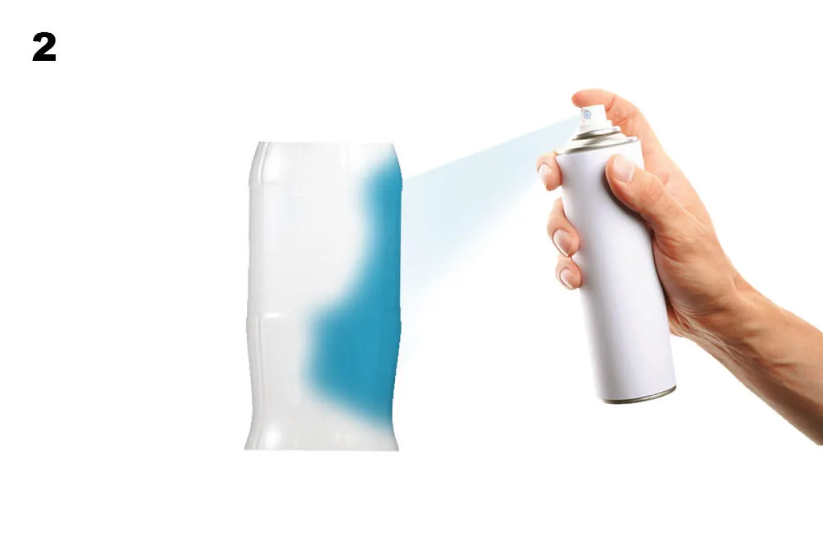2. تُرشّ القارورة برذاذ ملوّن.