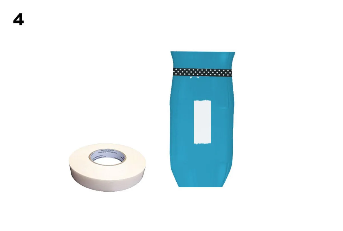 4. يوضع على الجزء الخلفي من القارورة الورق اللاصق لتثبيتها على الجدار.