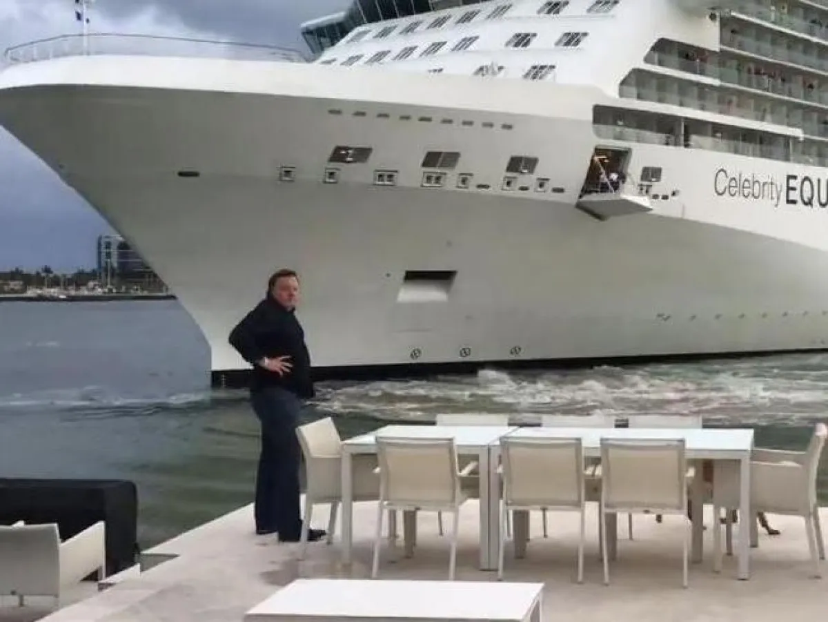 وبدت السفينة السياحية العملاقة (طولها 300 متر وزنتها حوالي 122 ألف طن)، وهي تبحر صوب واجهة المنزل الذي يبلغ ثمنه حوالي 2.9 مليون وكأنها فاقدة للتوجيه، وذلك في ولاية فلوريدا الأميركية.