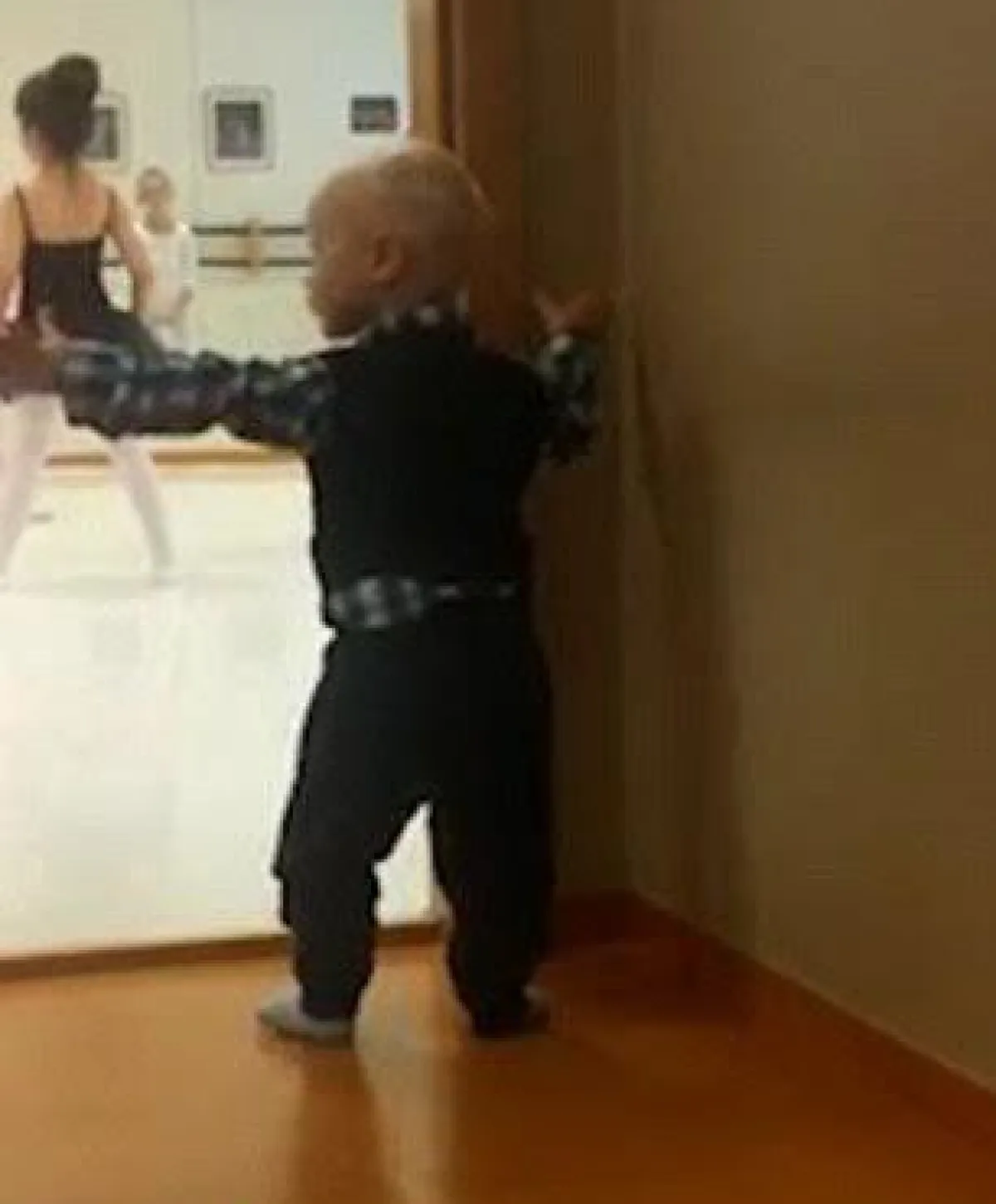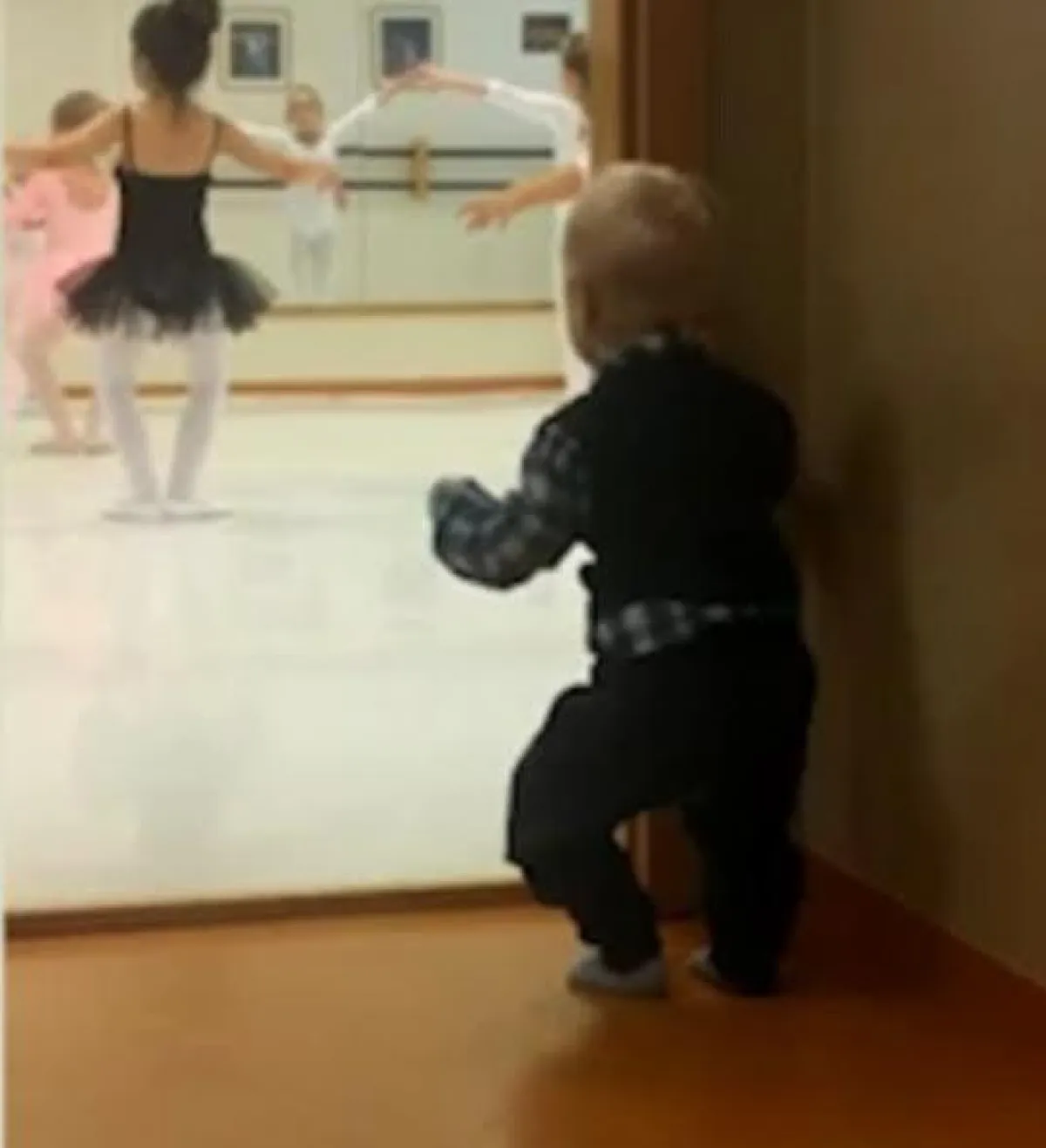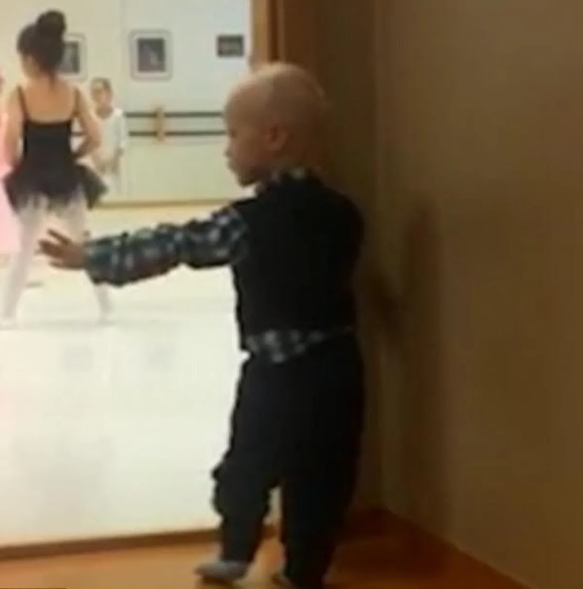 استطاع طفل صغير داخل مركز لتعليم رقص الباليه أن يجذب ملايين المعجبين له وذلك خلال تقليده خلف الكواليس لشقيقته الكبرى أثناء تدريبها على حركات الباليه .