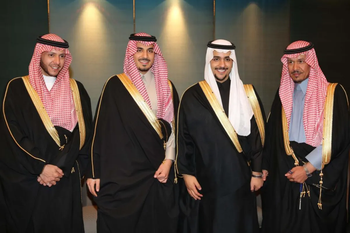 والد العروس والعريس والأمير تركي بن عبدالله والأمير عبدالرحمن بن فهد