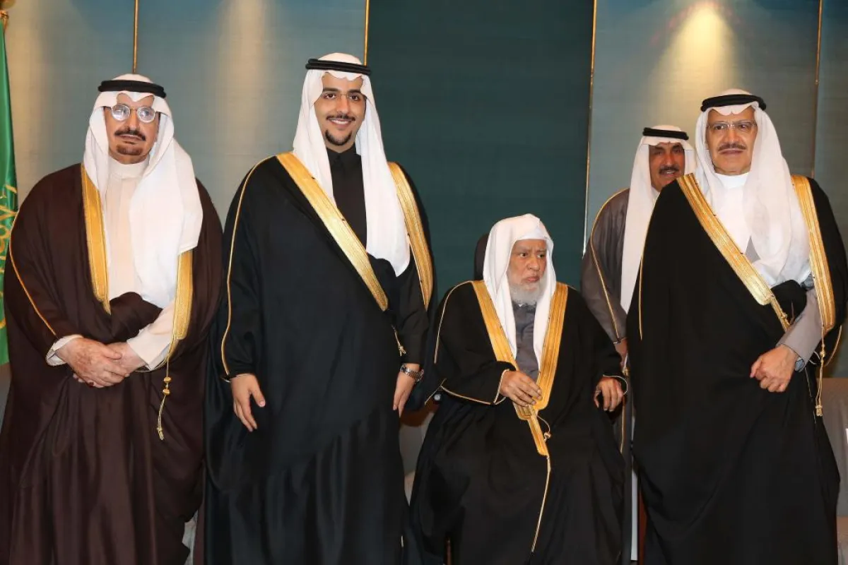 والد العروس والعريس والأمير عبدالمجيد بن عبدالإله والأمير عبدالرحمن بن فهد