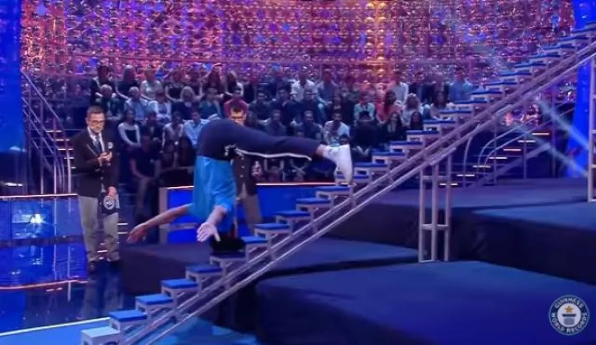 نشرت موسوعة غينيس للأرقام القياسية العالمية مقطع فيديو لشاب صيني يصعد الدرج برأسه لتسجيل رقم قياسي.