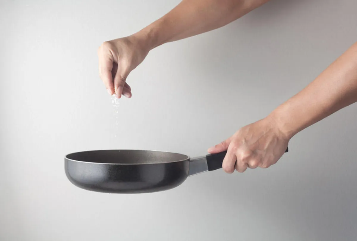 3. عندما يُنثر الملح في المقلاة، قبل تسخين الزيت، هو يحول دون تناثر الزيت.