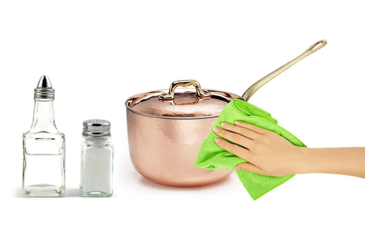 2. عند مسح آنية النحاس بقطعة من القماش المبلّلة بخليط من الملح والخلّ، تستعيد الآنية لمعانها.
