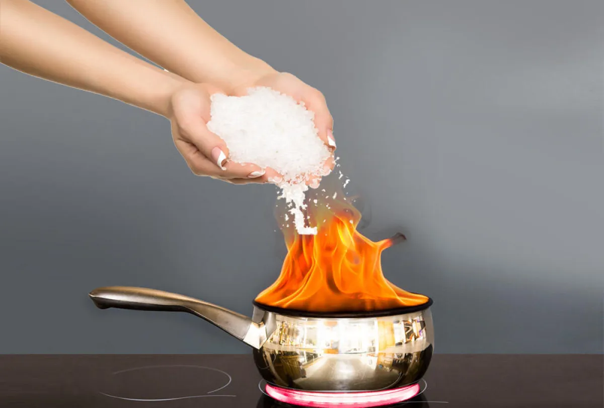 8. يخمد الملح النار في المطبخ، من خلال رشّ كمٍّ منه على المكان المشتعل. فالملح قادر على سحب الـ"أوكسجين" الذي يغذّي اللهب.