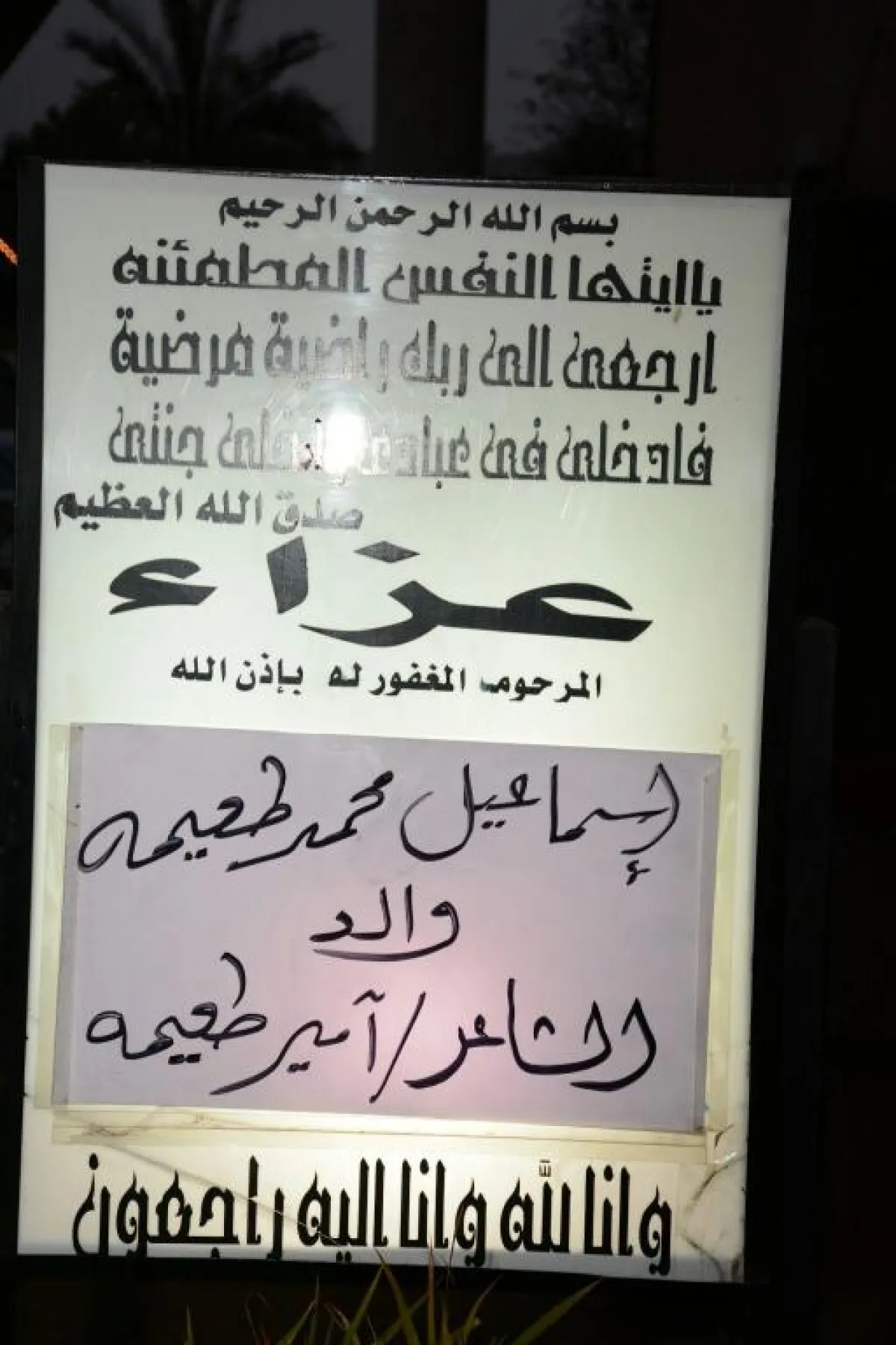 وكانت المنيّة قد وافت والد الشاعر الغنائيّ أمير طعيمه، يوم الخميس الماضي، بعد تعرّضه لأزمة صحيّة، ودُفن في بلدته بمحافظة الشرقيّة.