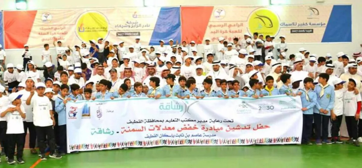 دشن مساعد مدير مكتب التعليم في القطيف علي الشهري حفل افتتاح مبادرة خفض معدلات السُّمنة لدى الطلاب تحت شعار "رشاقة"، بتنظيم من مدرسة عاصم بن ثابت الابتدائية في القطيف، وبمشاركة 350 طالباً، أمس الثلاثاء، بحضور مشرف الأمراض المزمنة ومنسق برنامج السُّمنة في إدارة الصحة العامة بالمنطقة الشرقية الدكتور أحمد العيد، ومشرف الصحة المدرسية محمد الزهراني، ومشرف النشاط المدرسي خالد أبو السعود.