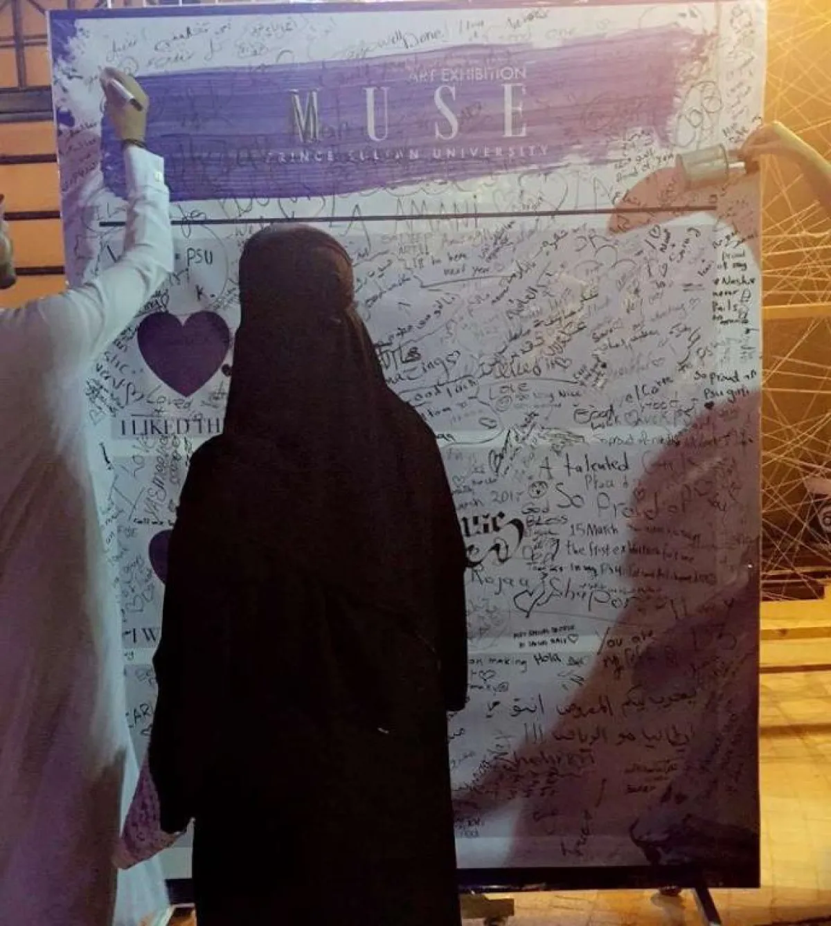 أقامت جامعة الأمير سلطان معرضاً فنياً تحت مسمى "muse"، عرض لوحات فنية رسمتها الطالبات. وقالت سارة الحسينان، إحدى منظمات الفعالية، لـ "سيدتي": إن هذا المعرض يعد أول معرض مفتوح للعائلات، وأقيم ليوم واحد فقط، وخصصت الفترة الصباحية فيه بدءاً من الساعة 11:00 للطالبات فقط، أما الفترة المسائية بدءاً من الساعة 6:00 فخصصت للعائلات، وتضمنت الفعالية استعراض مجموعة من اللوحات التي رسمتها الطالبات المشاركات، وأيضاً الرسم المباشر من قِبل الطالبات، وقد اجتذب المعرض أعداداً كبيرة من الزوار.