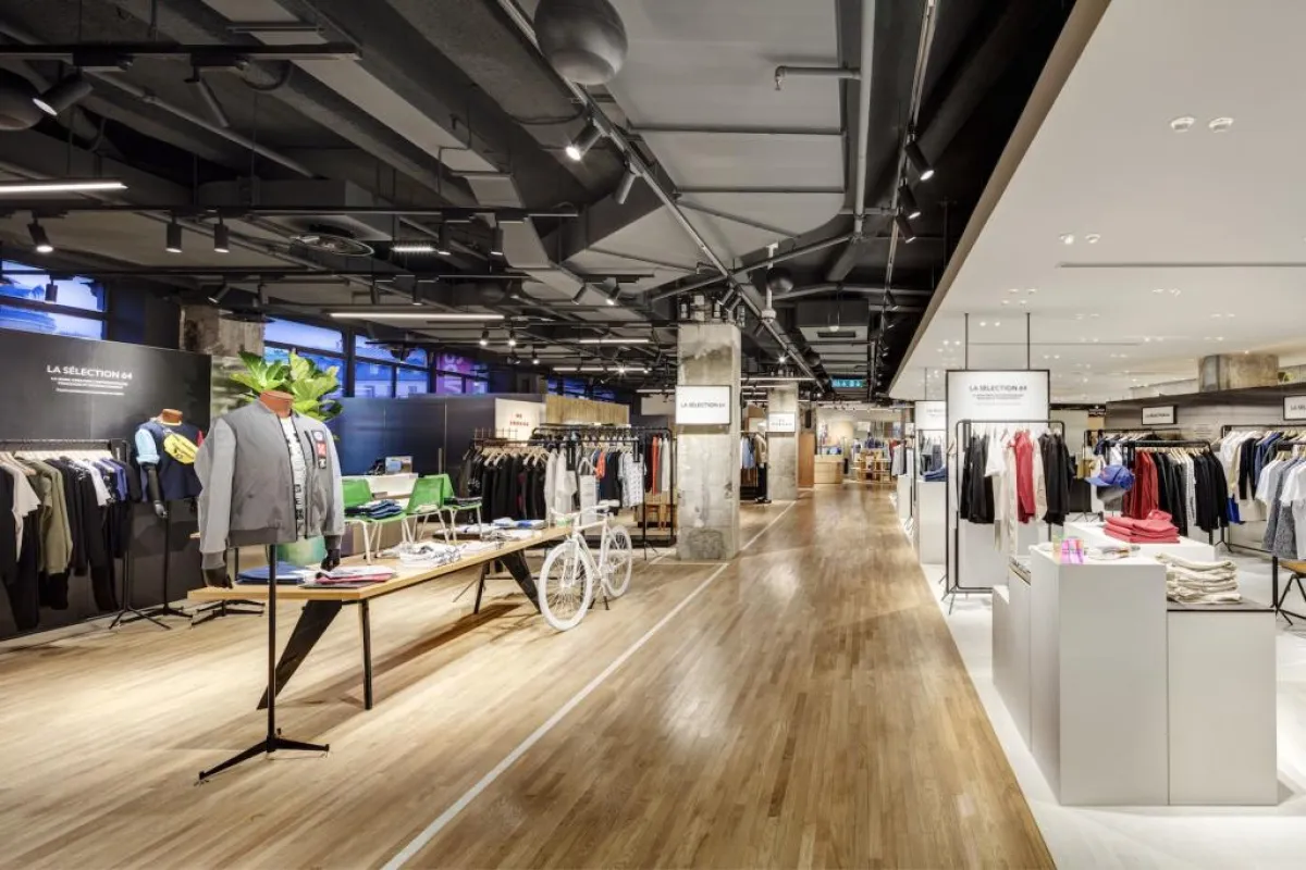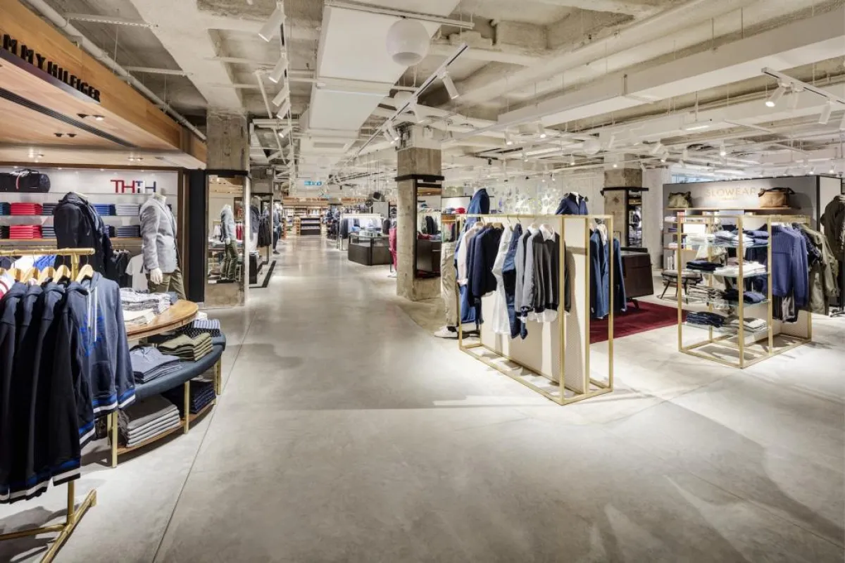 وفي كل طابق نوع خاص من المعروضات حيث في الطابق الأرضي تتوفر مجموعات الاكسسوارت اضافة الى مجموعات دور الأزياء الراقية. وفي الطابق الأول تتوفر مجموعات مصممي الأزياء والأزياء الجاهزة الفاخرة، أما في الطابق الثاني فتتوفر المجموعات الشبابية ذات النمط العملي، وفي الطابق الثالث هنالك التصاميم العصرية وقسم خاص بالجينز، أما في الطابق الرابع فسيجد الرجل احتياجاته من الألبسة الرياضية والألبسة الداخلية. وفي الطابق الخامس مجموعات الأحذية بمختلف تصاميمها الرسمية والكاجوال أيضاً.