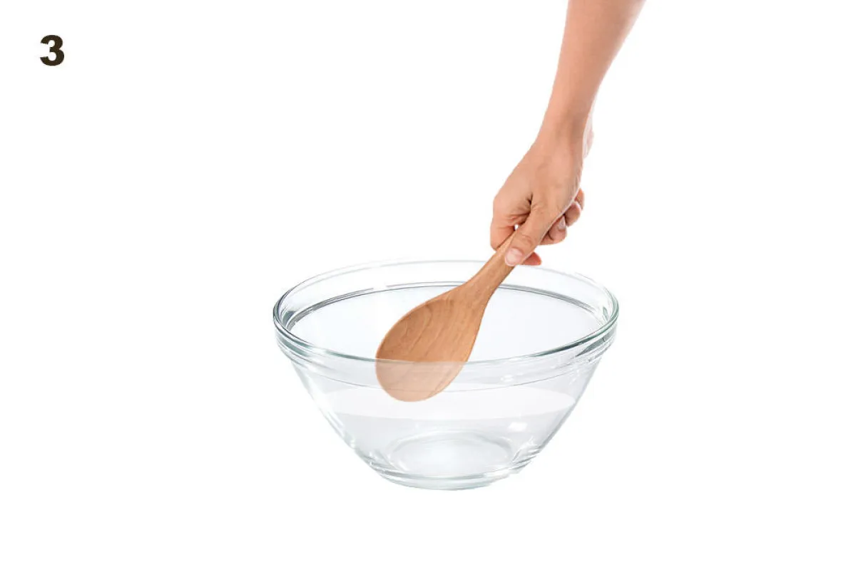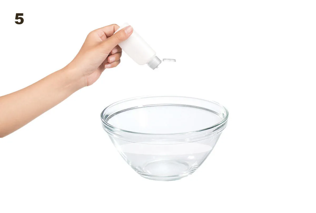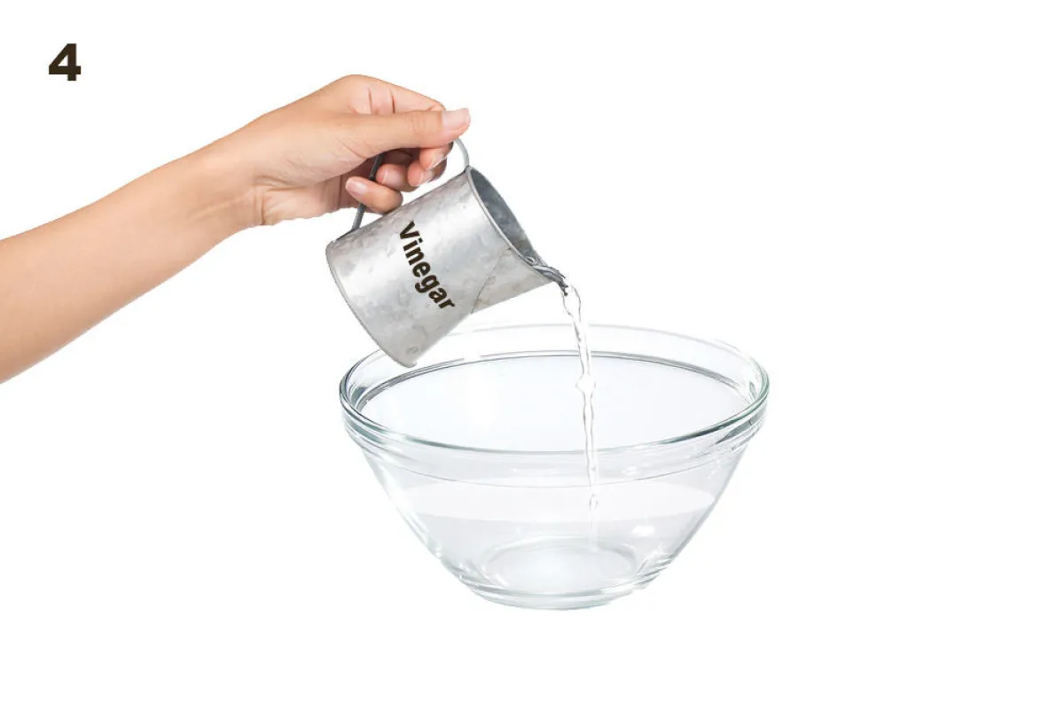4. يُصبّ نصف كوب من الخلّ الابيض، ويحرّك المزيج.
