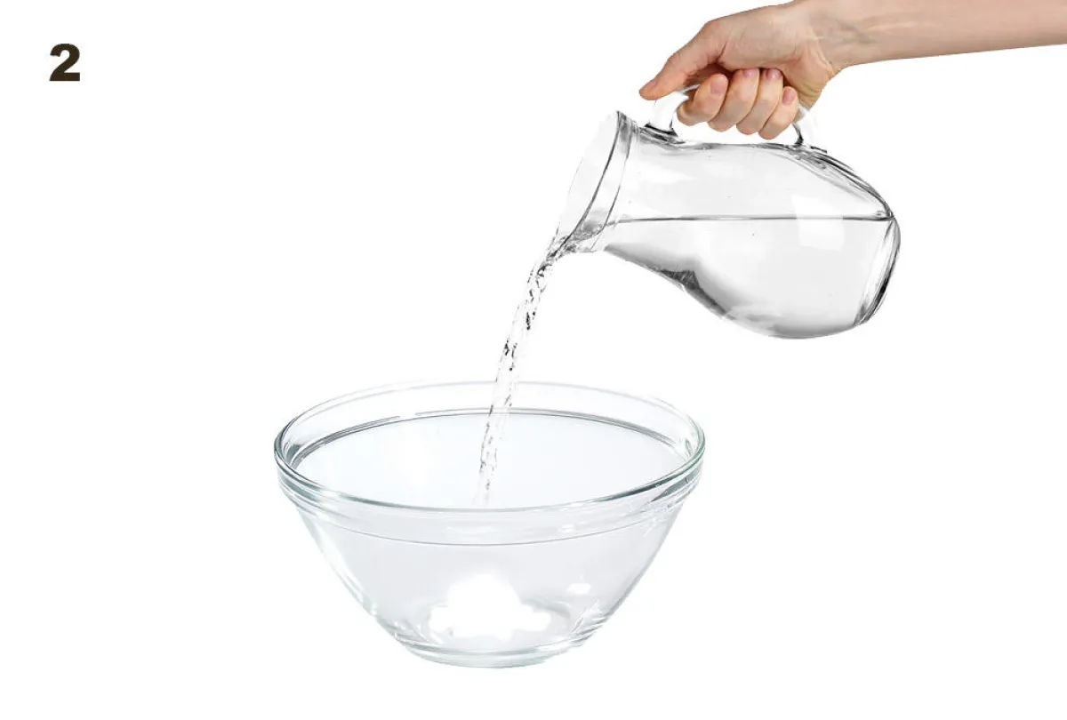2. يُسكب كوب من الماء الساخن (240 ميلليلترًا) فوقه.