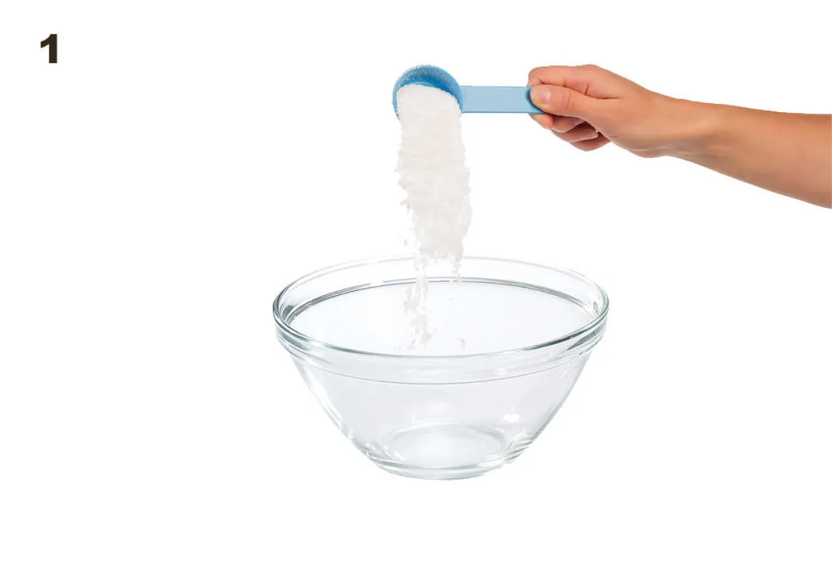 1. يُضاف نصف كوب من الـ"بيكينغ صودا"، إلى وعاء.