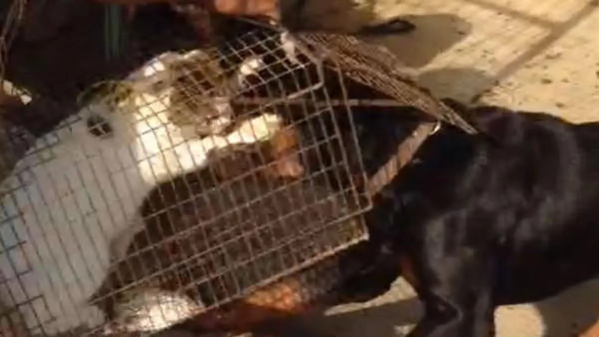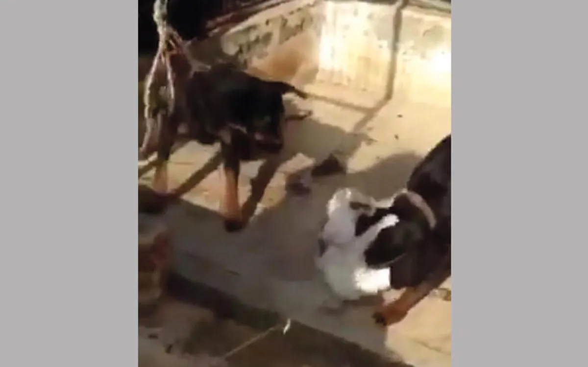 قطة تقدم لكلاب مفترسة لتنهشها حية