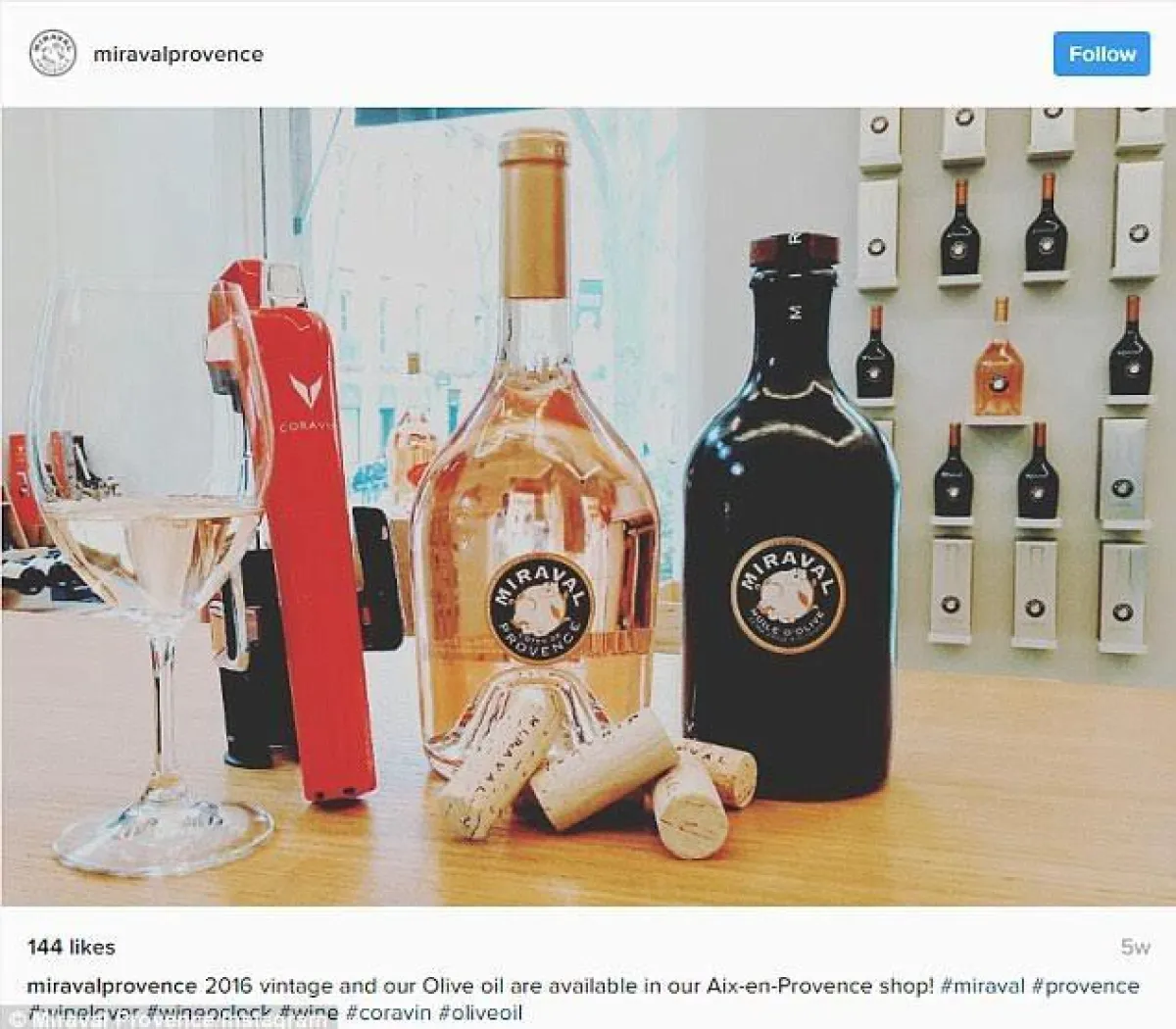 ذكرت وسائل إعلام عالمية، نقلاً عن أوساط من قصر ميرافال في جنوب فرنسا المملوك لـ براد بيت Brad Pitt و أنجلينا جولي Angelina Jolie أن هذه الدارة ليست للبيع على رغم طلاق النجمين السينمائيين، إذ أنه وأخيرا أنتج أول مواسمه لزيت الزيتون.
