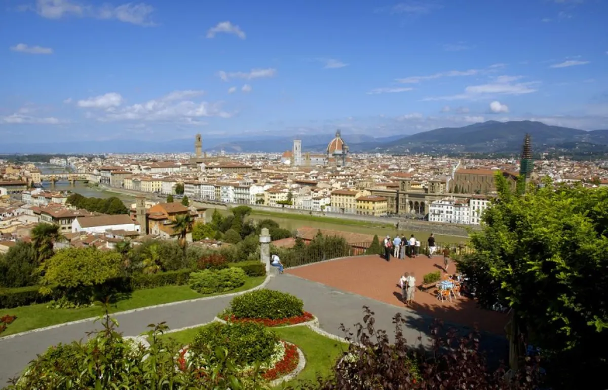 2. فلورنسا: تغري مراقبة الغروب في ساحة "مايكل أنجلو" الواقعة في قلب المركز التاريخي لمدينة فلورنسا، والتي تضمّ صرح فلورنسا الديني وبرج "كامبانيل دي غيوتو". كما يحلو تناول الوجبات الخفيفة في الأماكن المكشوفة، لا سيما في أحد متاجر سوق "سان لورينزو". في هذه السوق، لا تزال تتوفّر اللحوم الطازجة والخضراوات والفاكهة المزروعة محليًّا.