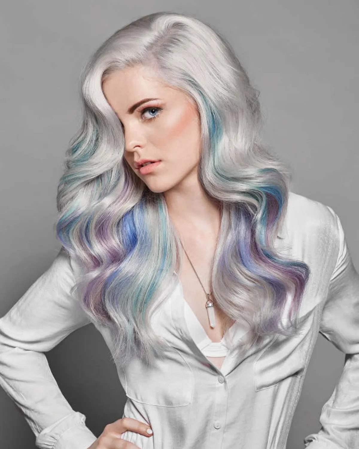 صبغ الشعر باللون الفضّي، موضة أساسيّة لهذا الموسم، ورغم أنه من أكثر الألوان التي تحتاج إلى تفكير طويل وقرار جريء قبل اختيارها. إلا أنه يمكنكِ اعتماده ببساطة شديدة الآن؛ لأنه رائج جداً بين الفتيات هذا الموسم، وهو يتماشى مع ألوان كثيرة، مثل: الأحمر، والأزرق، والبرتقالي، لذا لن تكون لديكِ مشكلة عند اختياركِ للملابس أو المكياج.