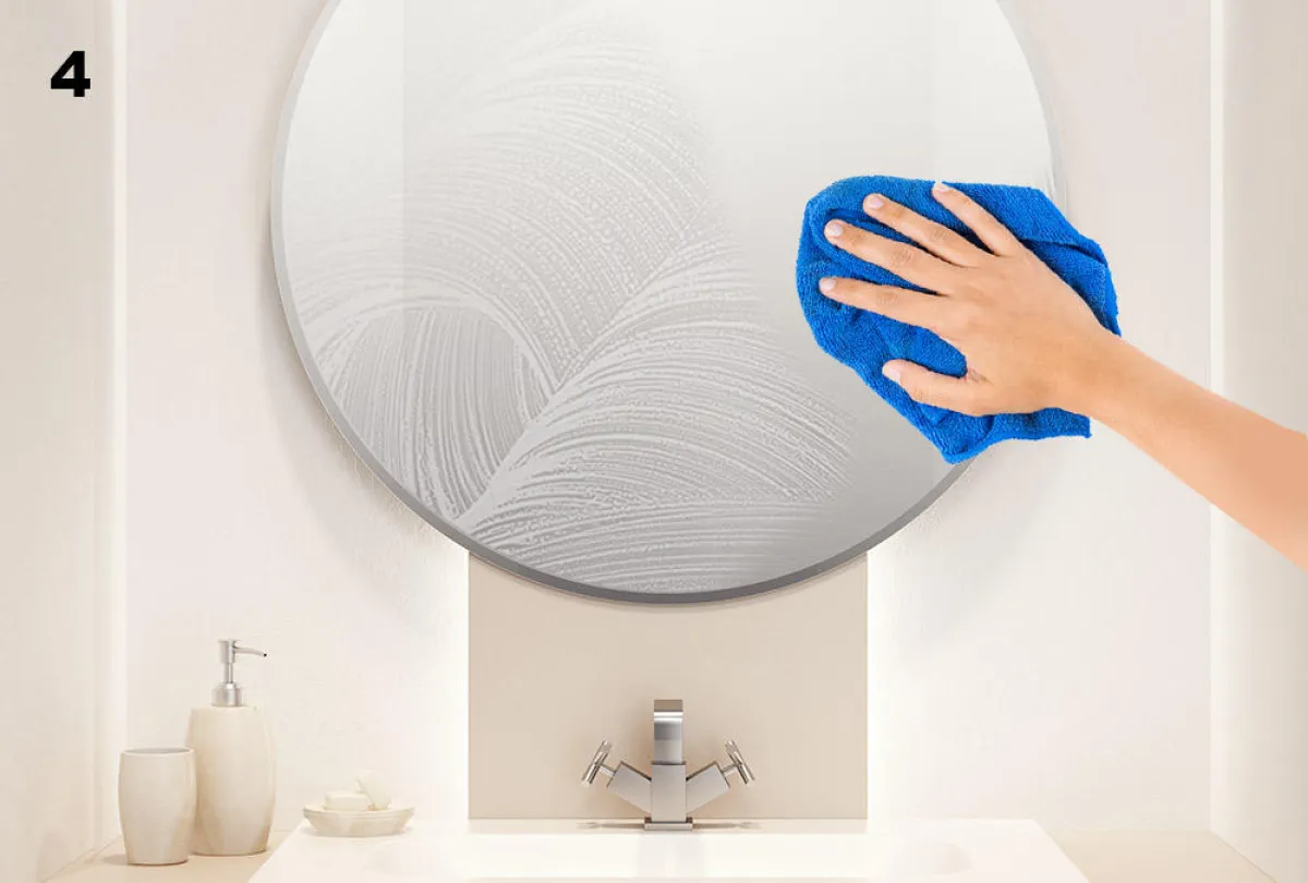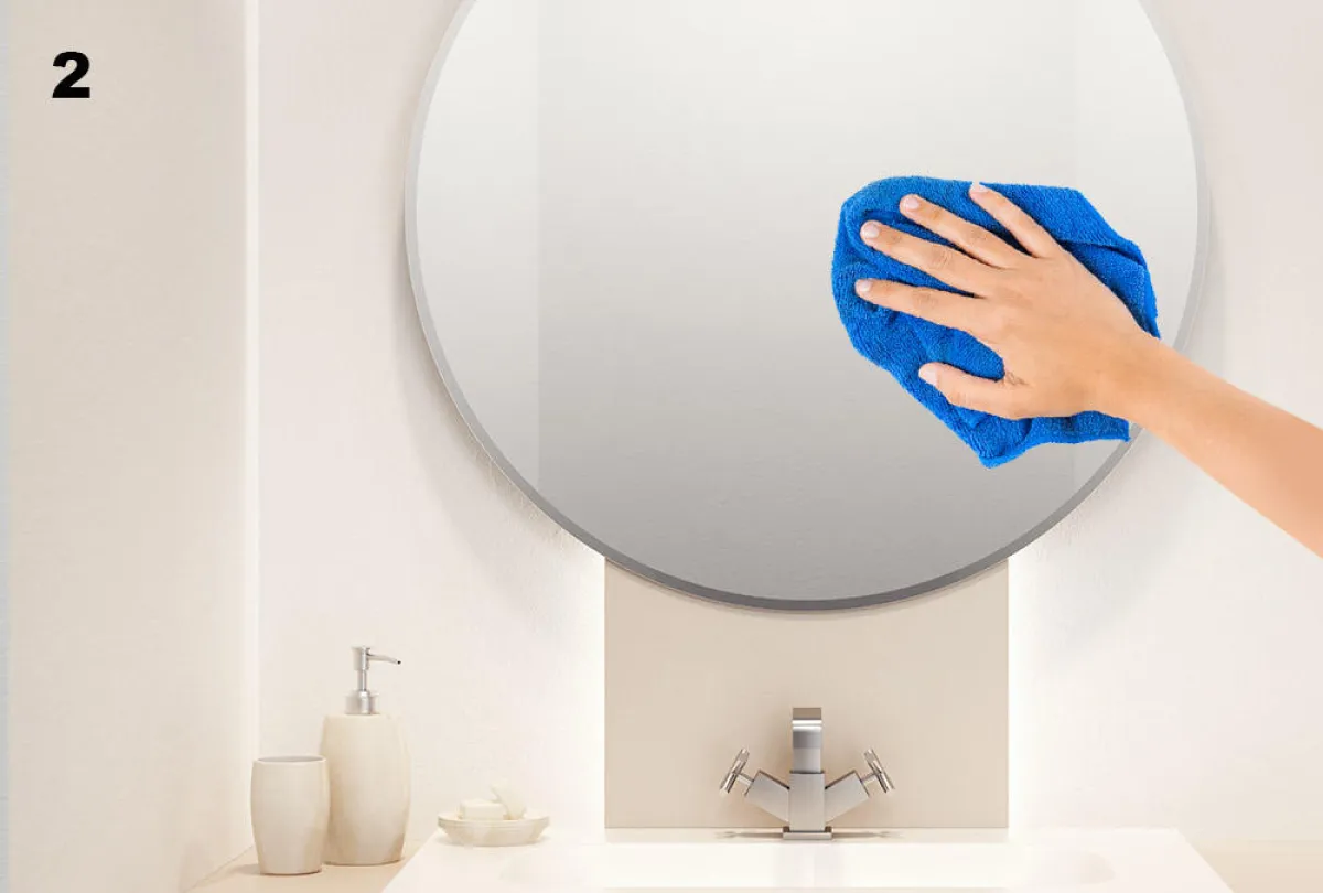 بعد الاستحمام، نُلاحظ تكاثف البخار على مرآة الحمام بسبب استخدام الماء الساخن، ما يعيق الرؤية عند النظر إليها. ولتنظيف المرآة، تُتبع الخطوات الآتية: