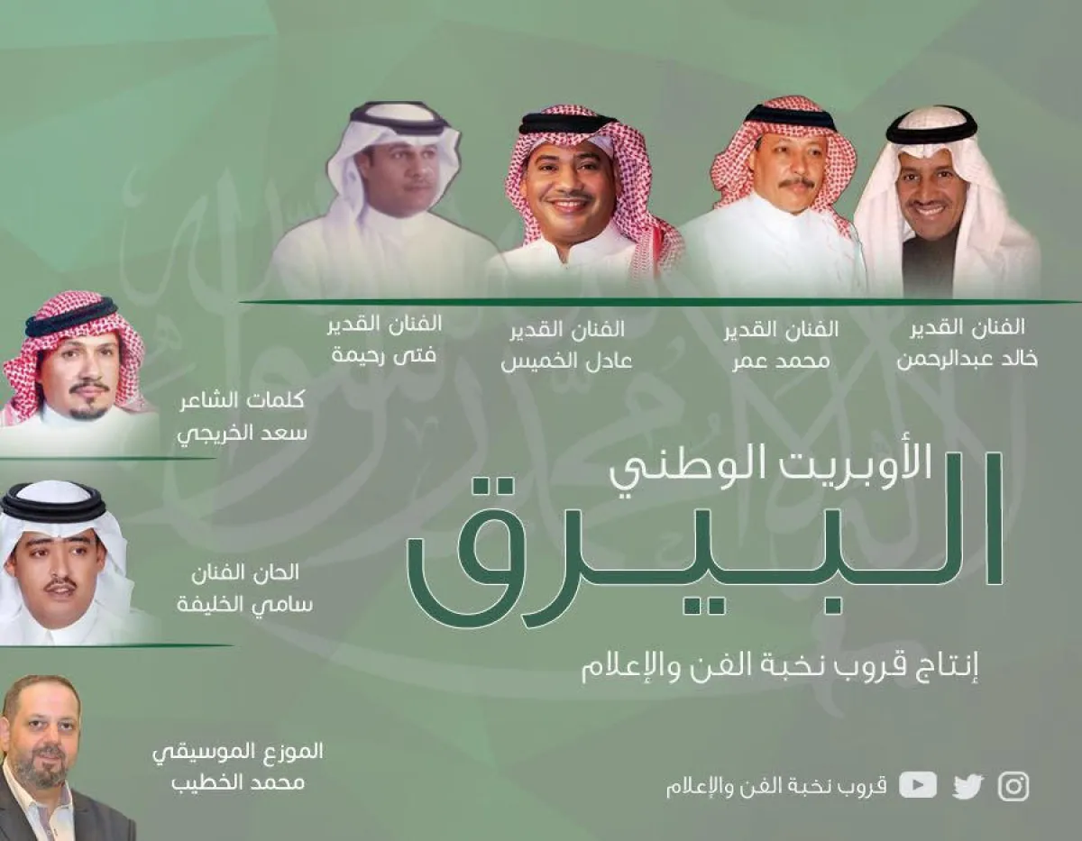 من كلمات الشاعر سعد الخريجي انتهى الملحن الفنان سامي الخليفة الأوبريت الوطني "البيرق" من إنتاج "قروب نخبة الفن والإعلام"، وشارك فيه أربعة من نجوم الغناء السعودي، وهم محمد عمر وخالد عبد الرحمن وفتى رحيمة وعادل خميس، وتوزيع موسيقي للفنان محمد الخطيب.