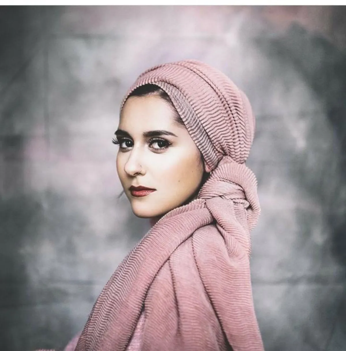 حجاب زهري منقوش بطريقة عصريّة يناسب ذوقها.