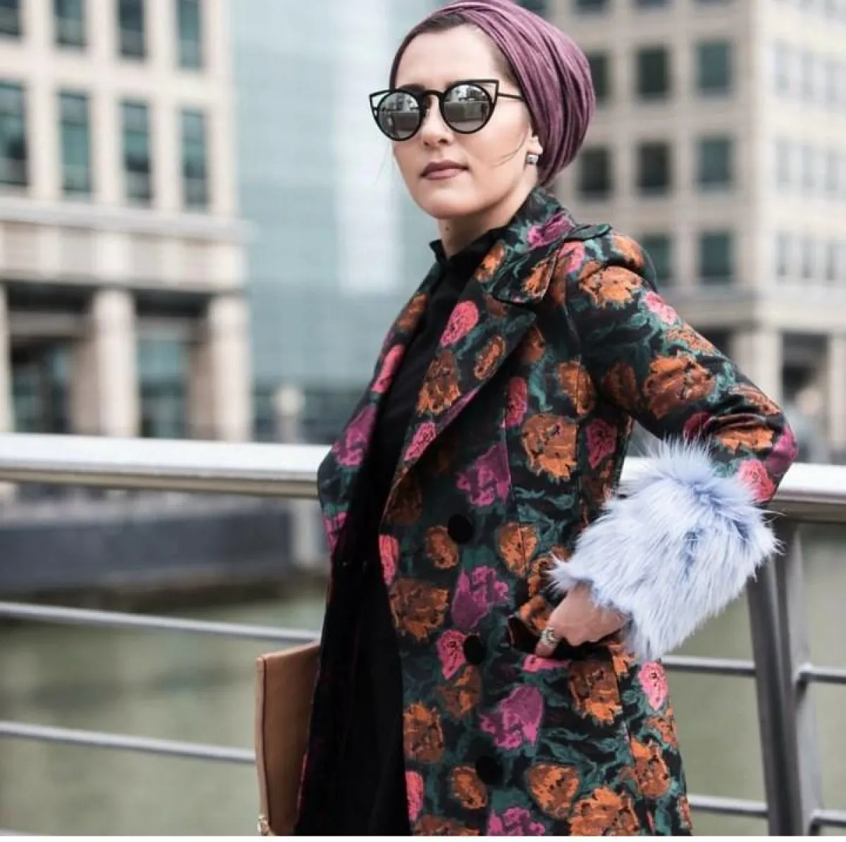 الفاشينيستا دينا طوكيو بالفرو والحجاب البني.