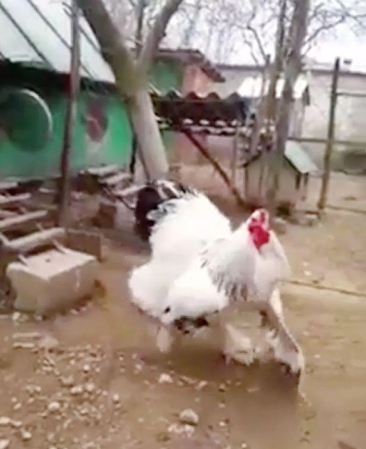 ويظهر في الفيديو ديك يخرج رأسه من خلال ثقب صغير نسبيًا حيث مكان إقامته، ليبدأ في خطواته إلى الفناء ويكشف عن ضخامته سواء في ريشه أو حجمه الذي لا يصدق، ويوضح ضخامته ذاك الريش الذي يكسو جسده، فهو أطول بكثير من معظم الكلاب، أما الدجاج الآخر فهو يتجول حول الفناء خيفةً منه.