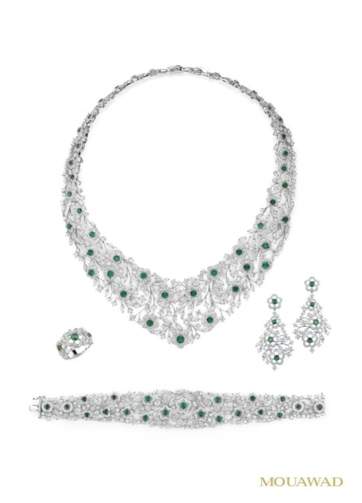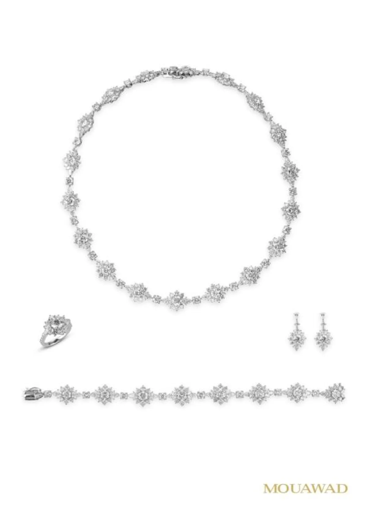 وقد صُممت كل قطعة من مجموعة الدار الجديدة، بإتقان وفنّ متناهيين لتحاكي بروعتها جمال العروس، وتسحر كل من ينظر إليها. وكما تحمل تقاليد الأعراس في طيّاتها جمالًا رمزيًّا، تُظهر آخر تصاميم مجوهرات معوّض بضيائها المتلألئ المعنى الحقيقي للزفاف، فيتجسد انسجاماً لزوجين ببراعة في الأطقم التي تتألف من قلادة وسوار وقرطا أذن وخاتم. وتجمع التصاميم زخارف كلاسيكية من الزهور والبتلات والقلوب والدموع تتهادى بين البساطة الفاتنة والعظمة الهائلة، لتقدّم لكل عروس فرصة اختيار المتمم الأمثل لجمالها.