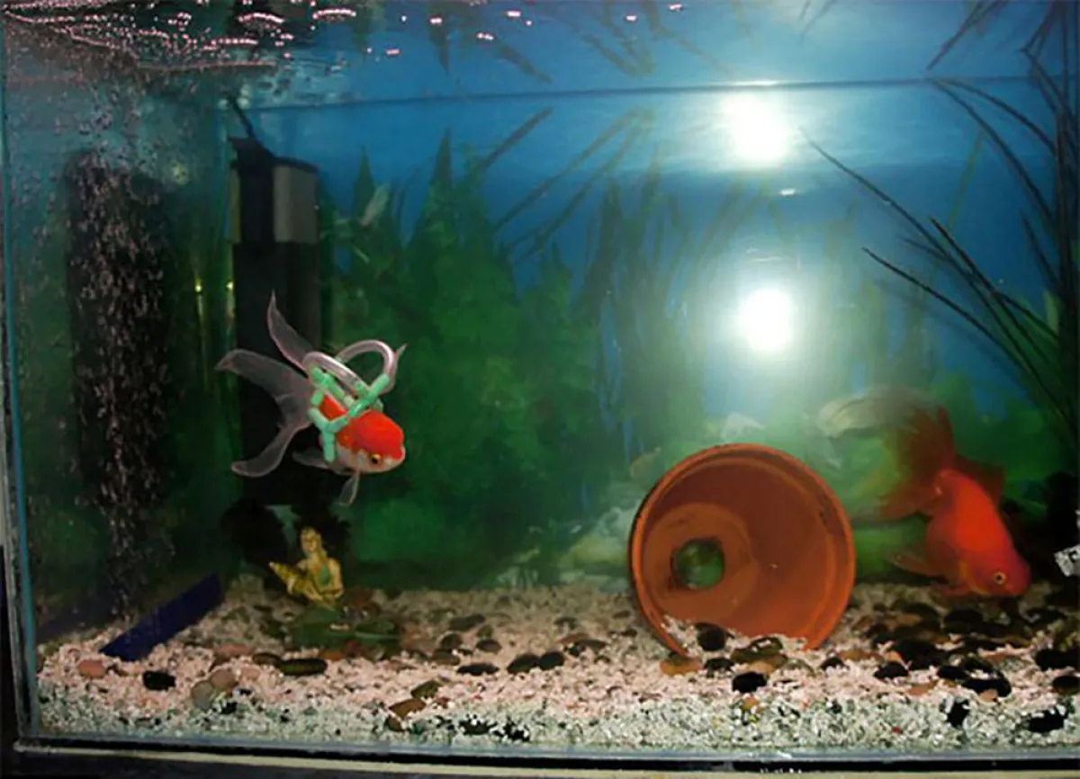 وفي التفاصيل، صنع "ديريك" العامل في متجر لبيع أسماك الزينة كرسياً متحركاً لسمكة زينة مريضة في أحد الأحواض لمساعدتها على السباحة. والكرسي عبارة عن جهاز متحرك، يساعد السمكة على السباحة، استخدم العامل في صنعه بعض الأنابيب والصمامات ومادة الستريوفوم.