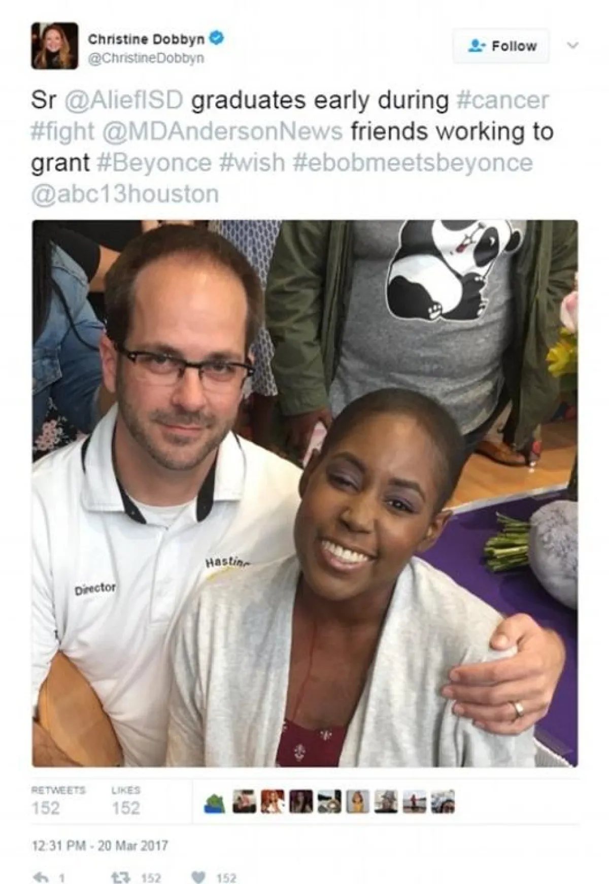 وفي التفاصيل، فقد بدأت ايبوني بانكس Ebony Panx التي تعدّ من أشد معجبات بيونسيه، حملة على مواقع التواصل الاجتماعي مع عائلتها واصدقائها مستخدمين هاشتاق "#EBOBMEETSBEYONCE" للوصول إلى بيونسيه، وإمكانية جمعها مع مريضتهم التي شخصت درجة السرطان في جسدها بالرابعة، والتي تسببت ببقائها في المستشفى لمدة عام حتى الآن.
