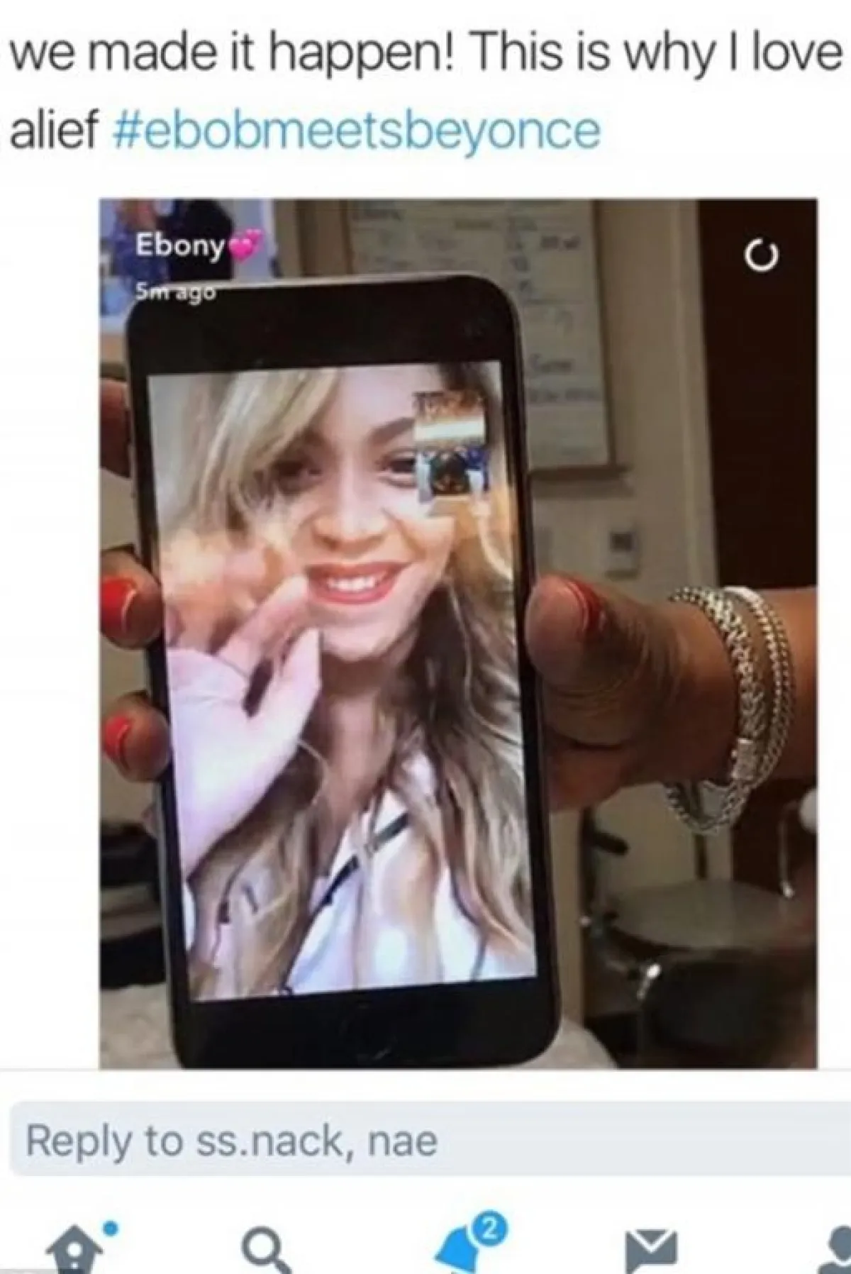 وبالفعل وصل الهاشتاق إلى بيونسيه ولبّت أمنية المعجبة، ووافقت على إجراء مكالمة فيديو معها، وكانت مملوءة بالمشاعر ودموع الفرح والسعادة.