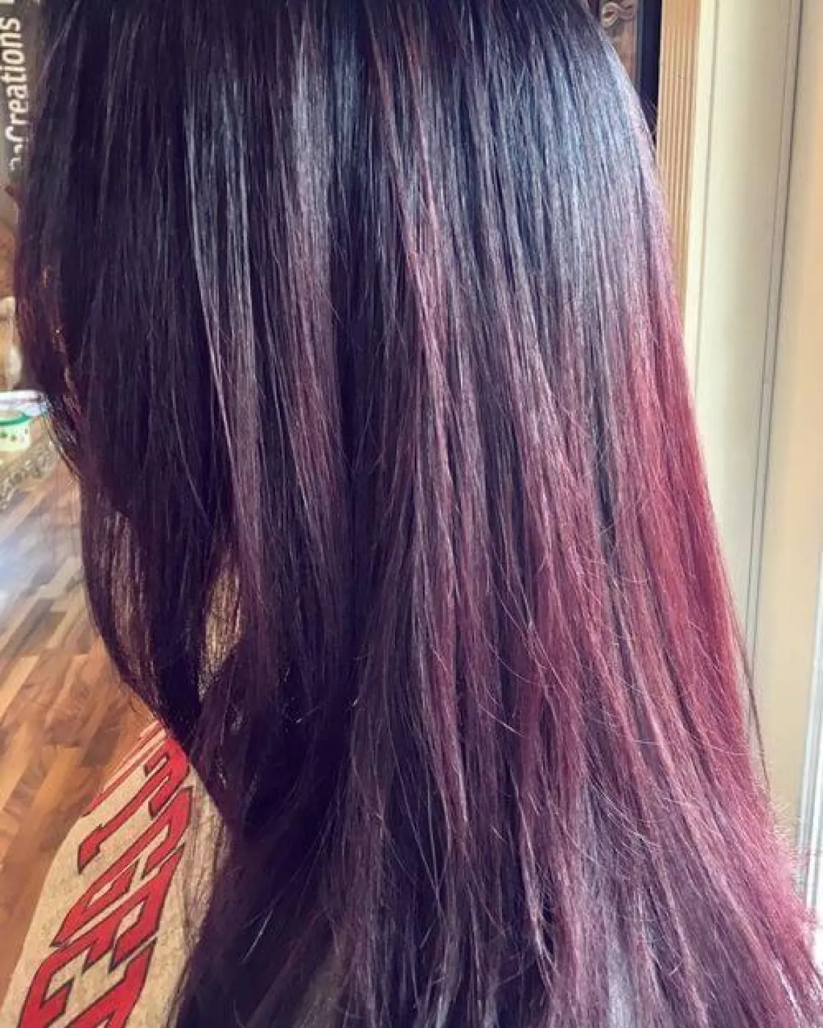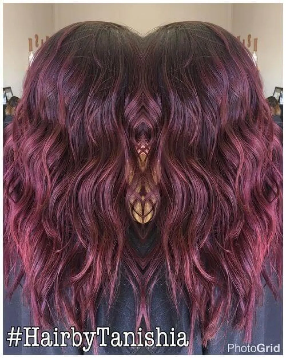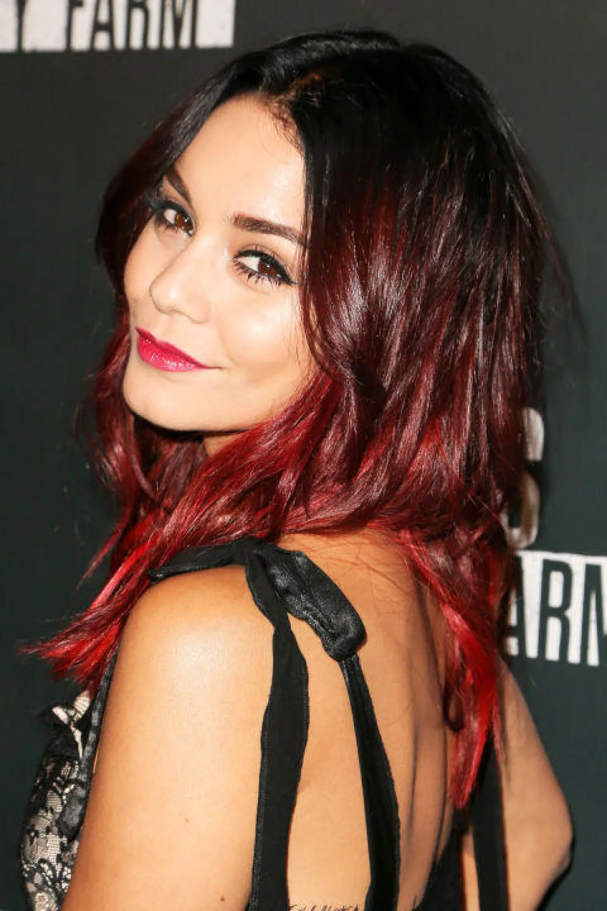 هادجنز فانيسا Vanessa Hudgens: اتاحت لنهايات شعرها ان تظهر في الأسود، لتتماشي مع الأومبريه البورغوندي.